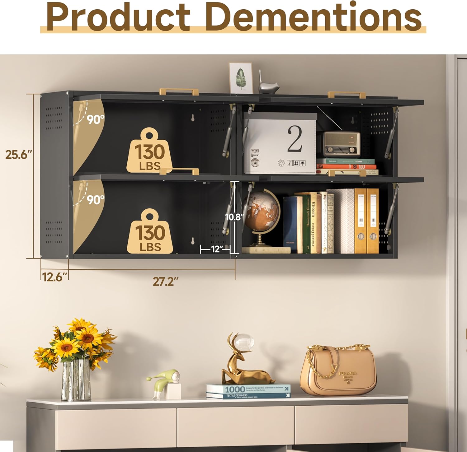 - 【STYLISH DESIGN】Metal garage wall cabinet with doors is made of cold-rolled steel plates, can withstand loads of up to 130lbs for each shelf; Cabinet doors are vintage gold handle for easy opening. Perfect storage design for various places.