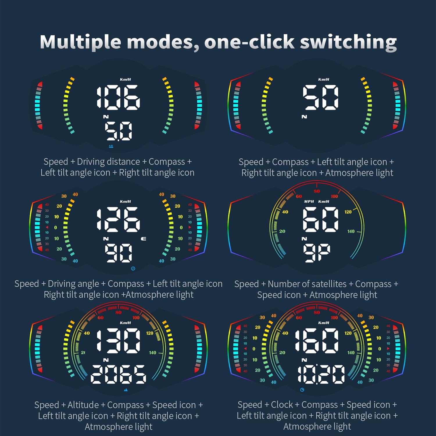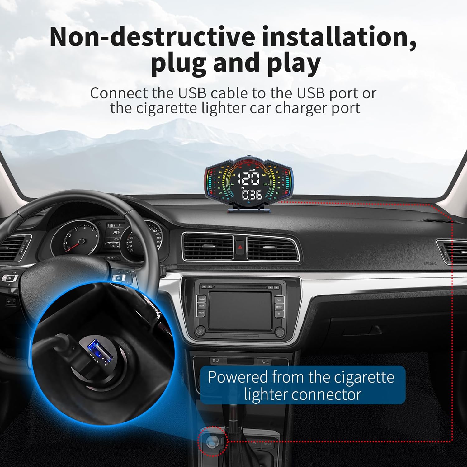 - Versatile Compatibility: Display accurate GPS speed readings in both MPH and Km/H, ensuring you always know how fast you're going. This universal car GPS head-up display is compatible with all vehicles, making it a perfect addition to cars, trucks, motorcycles, and more.