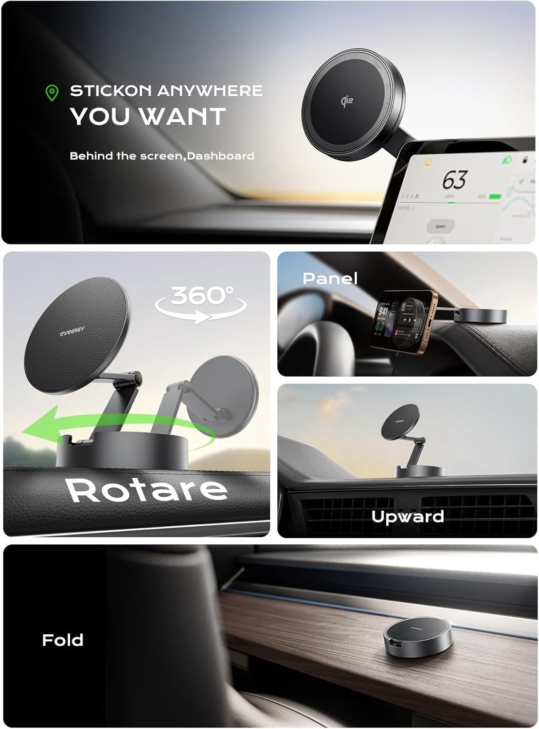 - 【Revolutionary 2-in-1 Design-Magnetic Car Mount & Wireless Charger】Use THREEKEY Wireless Car Mount Charger as a fast-charging pad or detach it for a minimalist phone holder. One sleek design, two ways to ride!