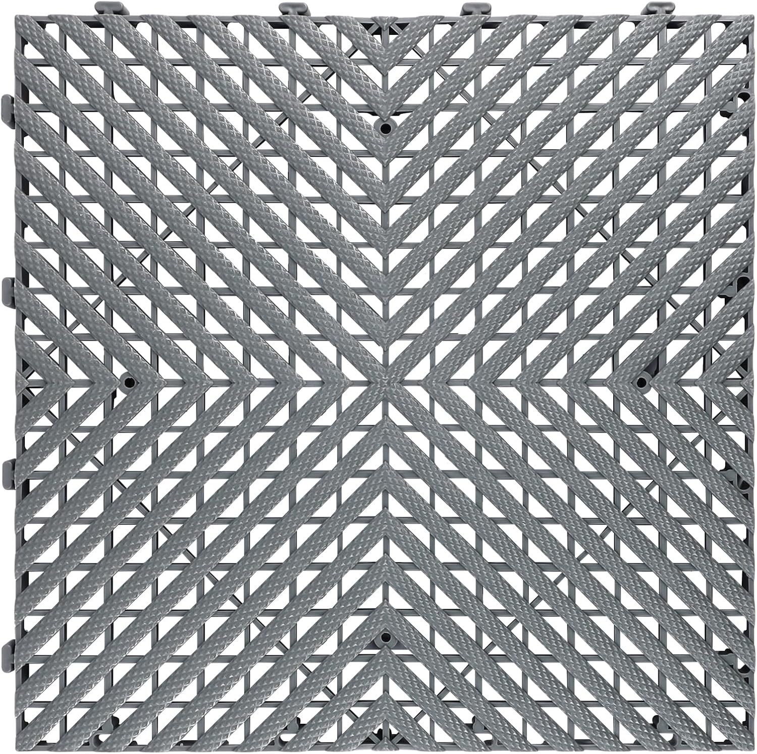 Interlocking Garage Floor Tiles - 0.79in,Vented, Self-Draining, Non-Slip Flooring, Modular, Virgin Polypropylene, Ideal for Garages, Patios, Basements, Decks -51.6 sq ft (Grey, 30PCS)