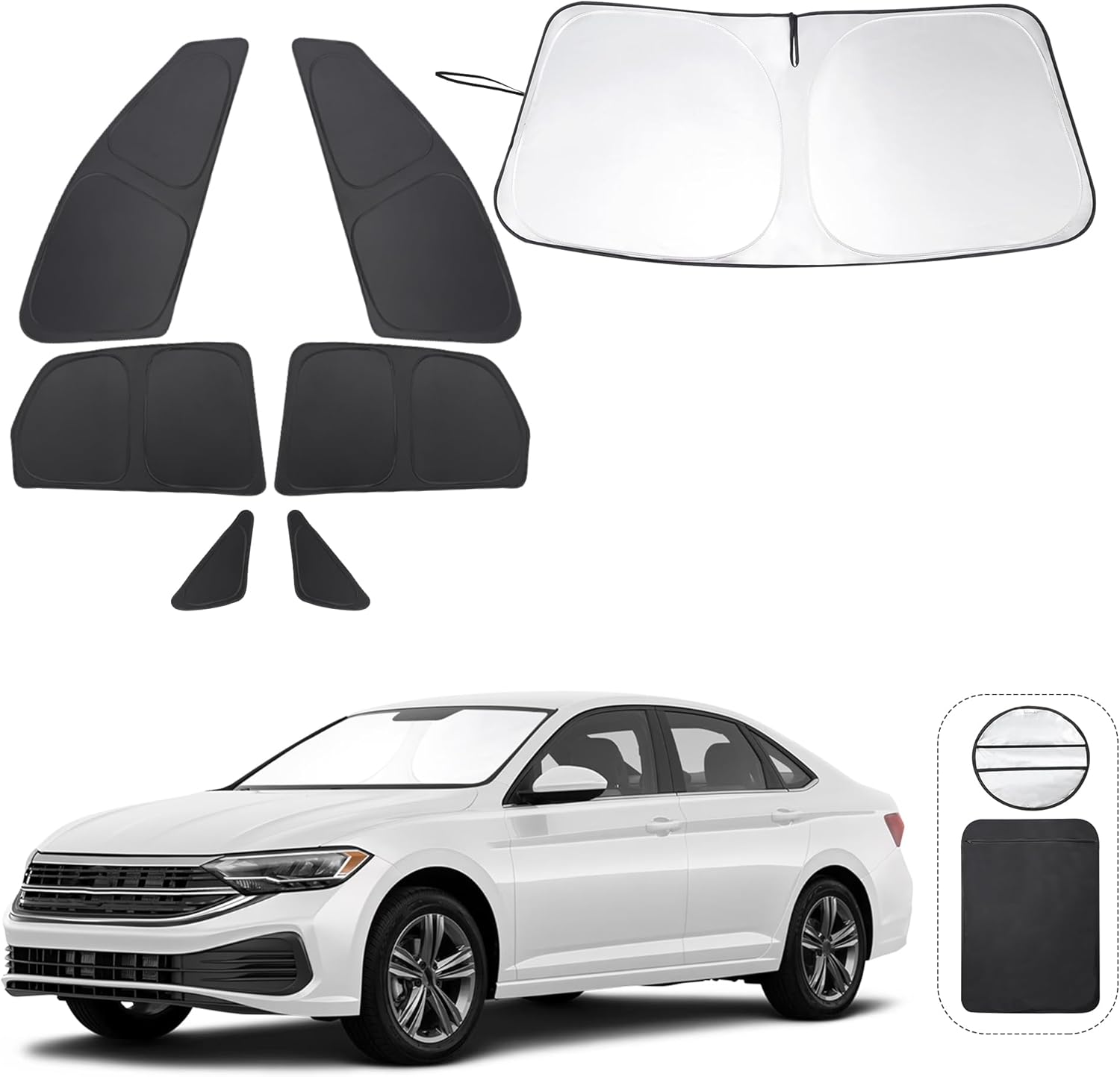 TINGLU Window Shades for Volkswagen VW Jetta 2019-2024 2025 Accessories Car Side Full Windows Triangular Windshield Sun Shade Sun UV Rays Privacy Protection 7PCS