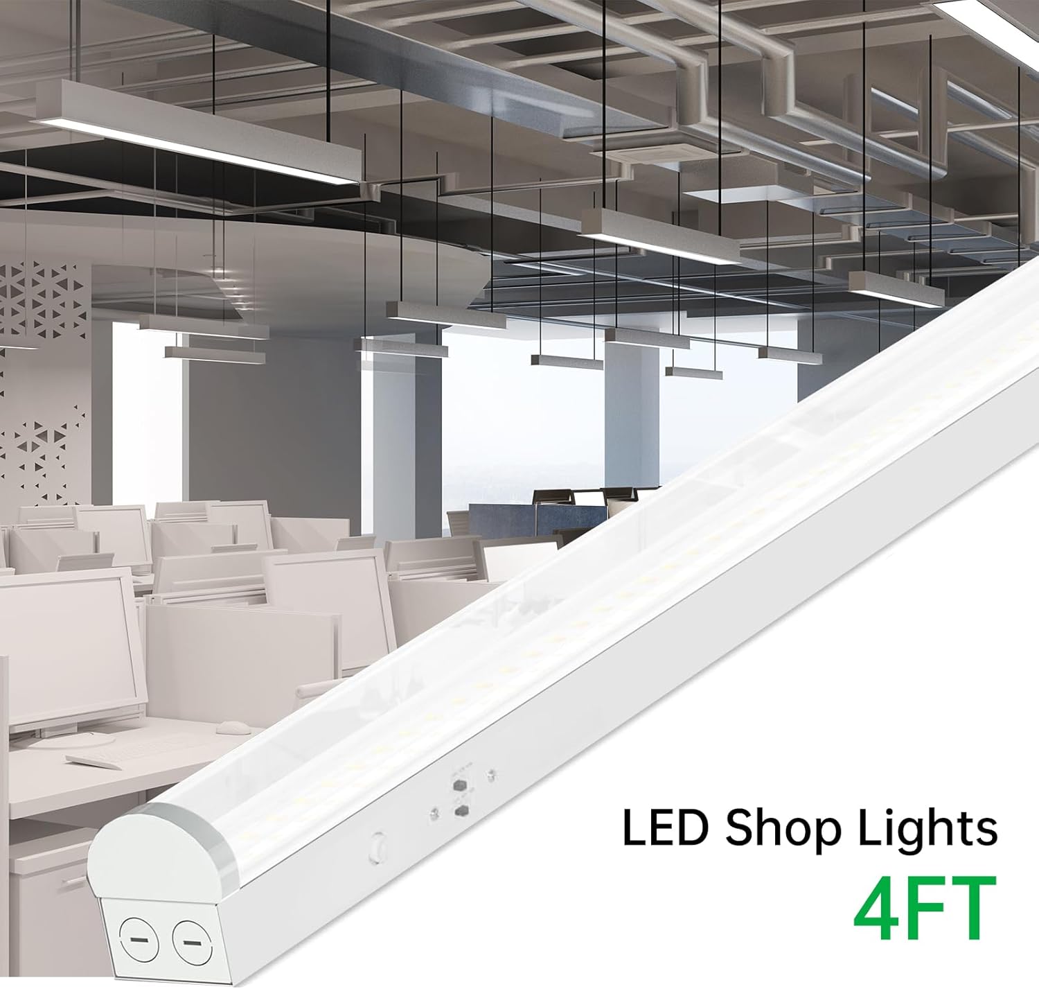 - WIDE APPLICATION - This 4ft led shop light fixtures are perfect for garages, warehouse, workshop, supermarket, basement, workbench, utility rooms, storage room, barn, equipment rooms, auto shops and replacing fluorescent versions.