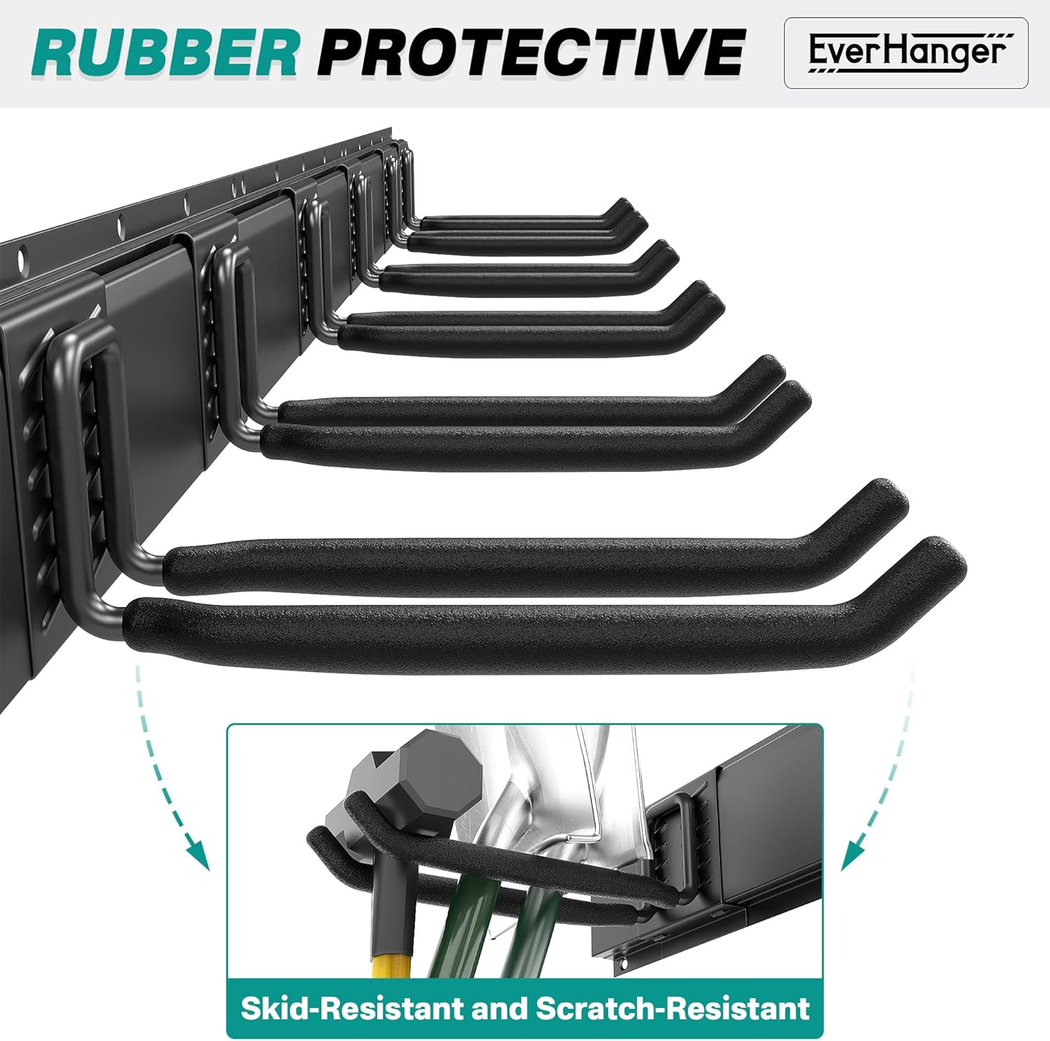 - Heavy-Duty Steel Construction: Constructed from premium steel with powder-coated finish, offering superior resistance to rust and cracking. The rubber-coated hooks safeguard tools from scratches while providing anti-slip stability for secure storage