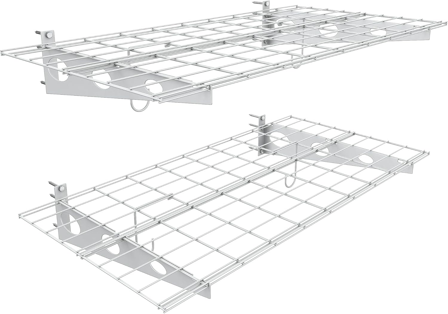 EVERHANGER Wall Mounted Garage Shelves, 2 x 4 ft Metal Storage Shelves, Heavy Duty Wall Shelving with Hooks, Holds Up to 220 Lbs, White