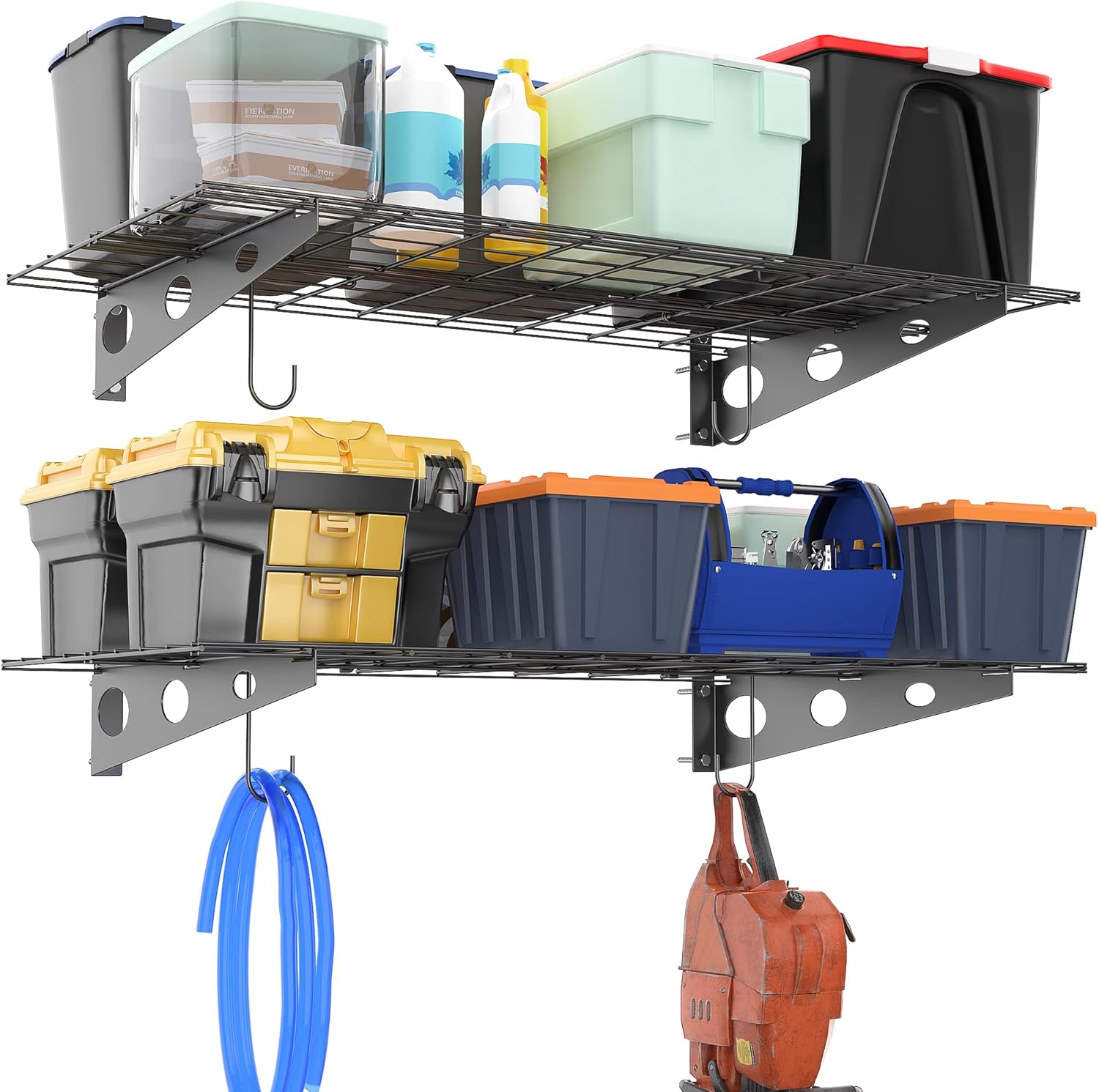 - Maximize Your Space: The wall-mounted storage shelves help you bring harmony to your space. Clear your garage floor, reduce clutter, and create an orderly space where tools, sporting goods, and more can rest peacefully