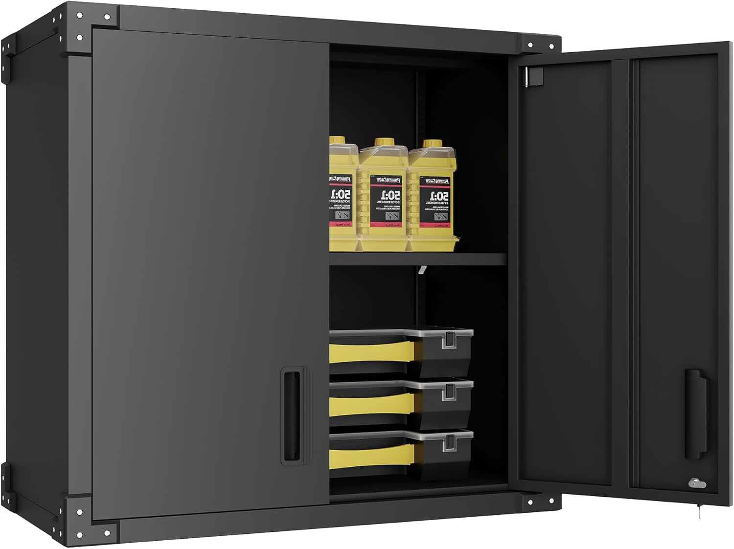 Garage Wall Cabinet,Metal Wall Cabinet with Doors and Adjustable Shelves,Steel Utility Wall Mounted Tool Cabinets for Home,Office,Kitchen,Warehouse