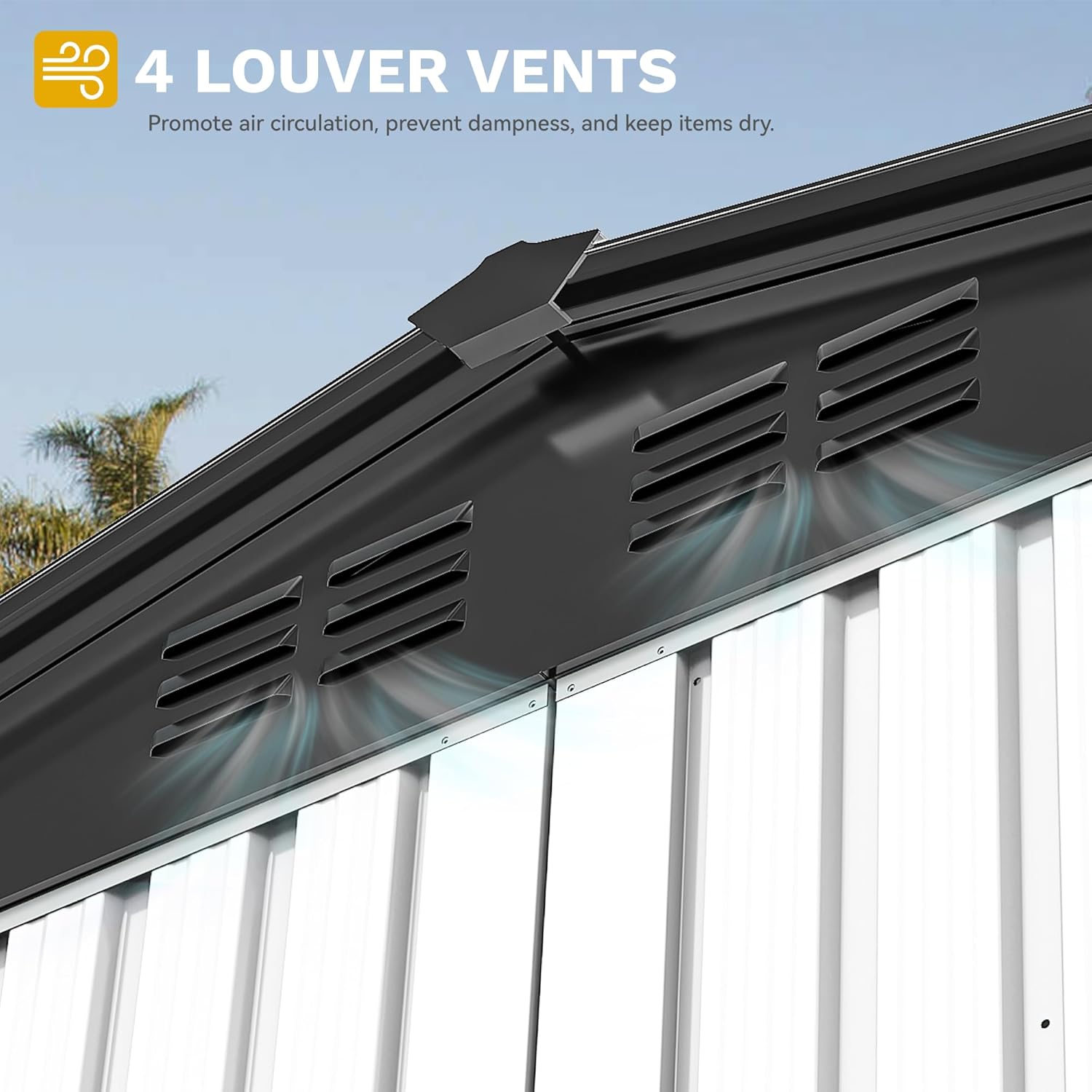 DWVO 8x6ft Metal Outdoor Storage Shed, Waterproof Tool Shed Heavy-Duty Storage Unit with Lockable Door and Vents, Ideal for Bicycles, Tools, Lawnmowers, Backyards, Patios, Lawns - White