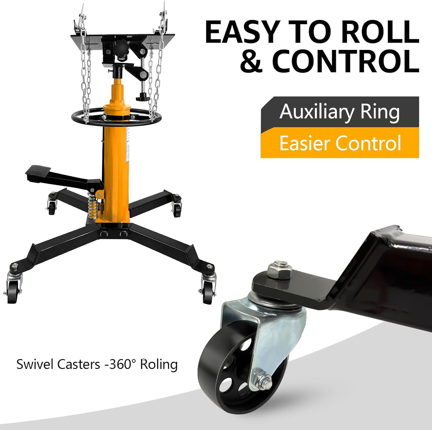 Transmission Jack 1660 lbs/ 0.75 Ton Capacity Hydraulic Telescopic Transmission Jack 34" - 68" Adjustable Height Telescoping Transmission Hydraulic with 360° Swivel Wheels Lift Hoist