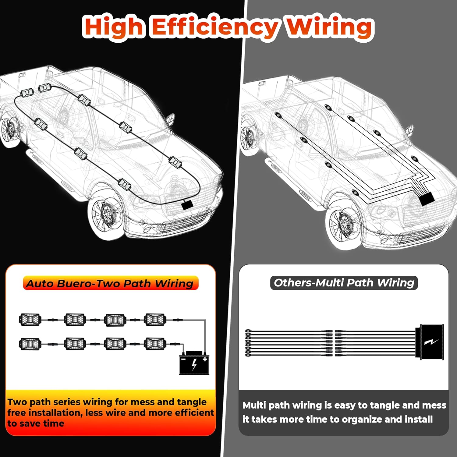 - ăDual Path WiringăHassle-free set up with dual path series wiring. The on/off switch prevents battery drainage, and a safety fuse adds extra protection