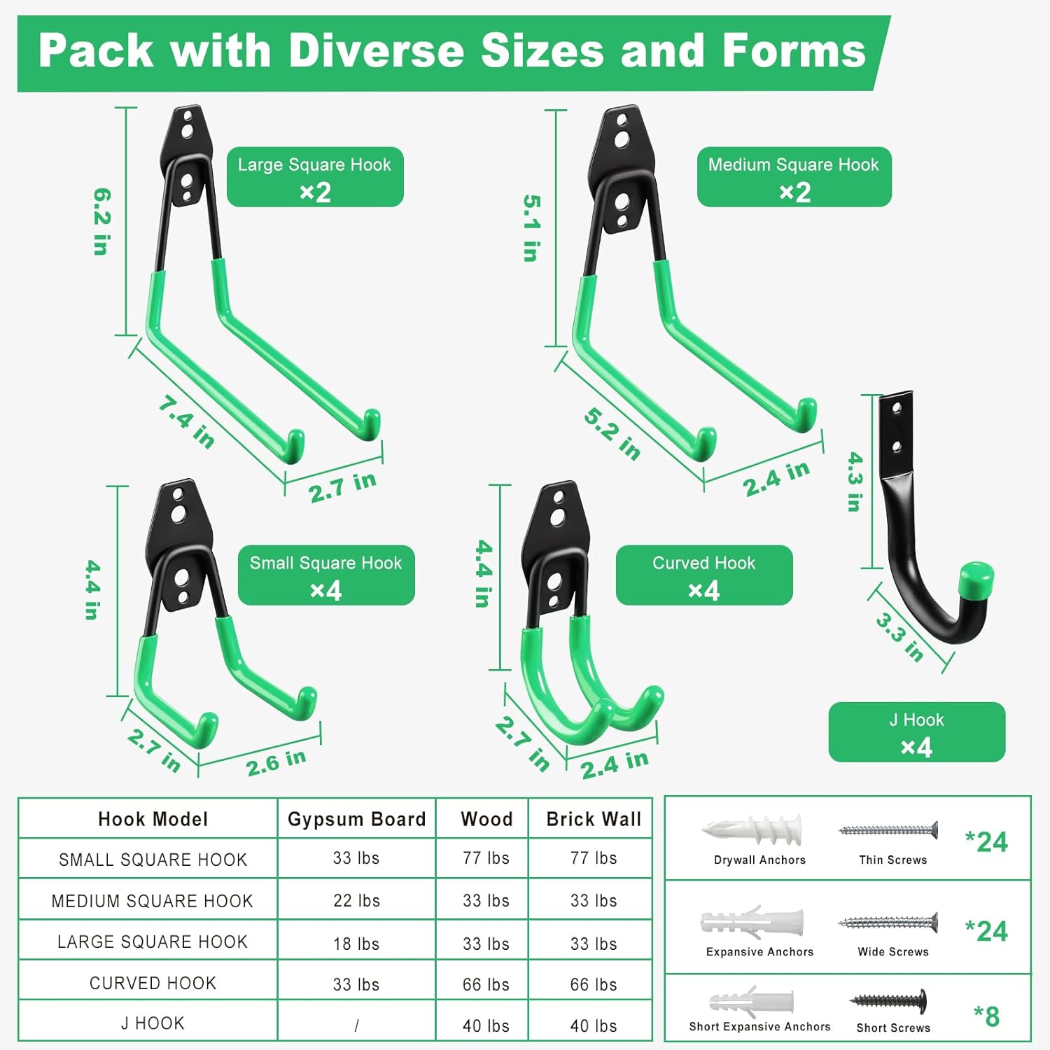 - Bonus Storage Straps: Includes two sizes of storage straps to securely bundle and hang items like garden hoses, ladders, or ropes, enhancing the utility and organization of your garage or workspace.