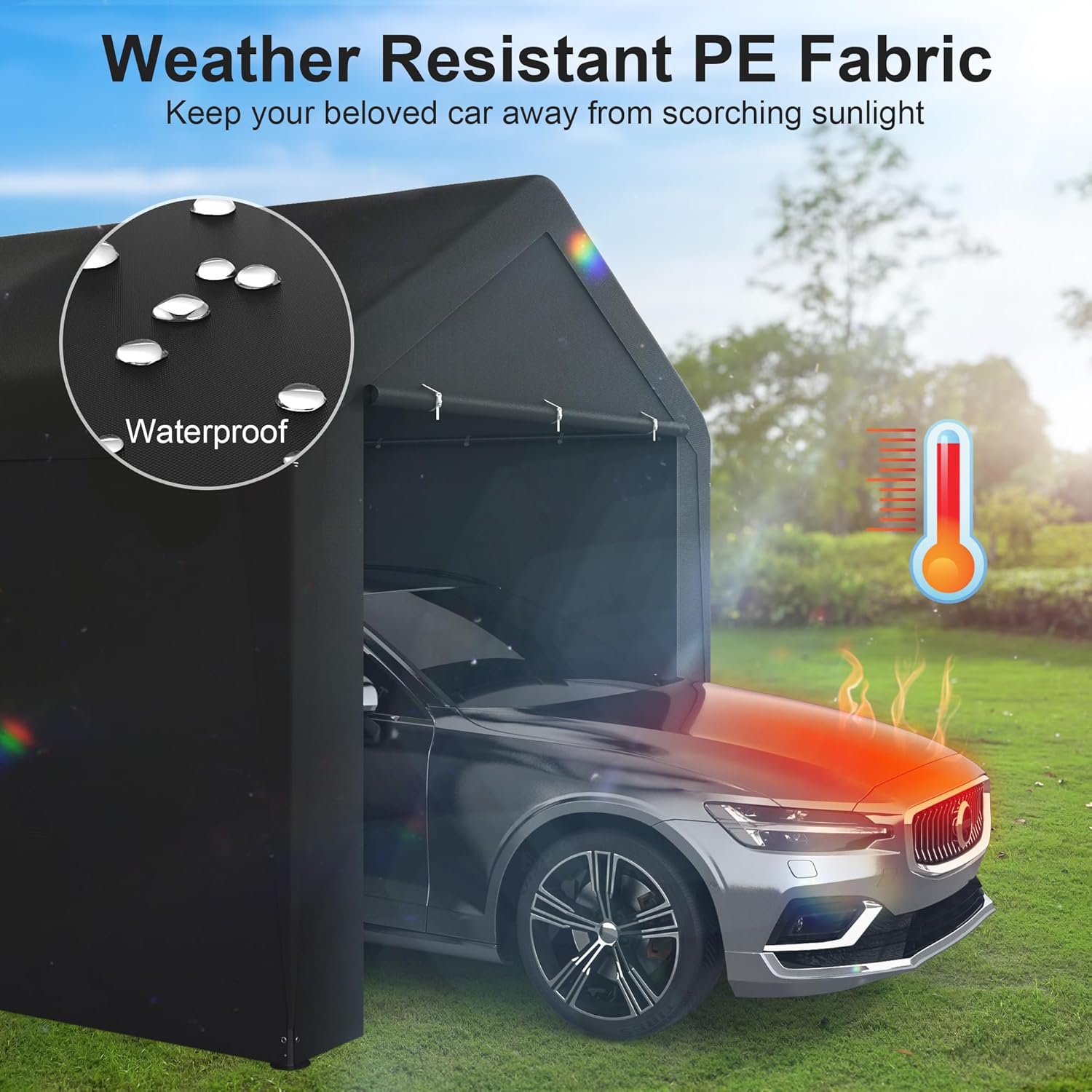 - Waterproof & Durable Carport: The car tent canopy is made of 180G polyethylene material, which is waterproof and UV-resistant, so that your car won't heat up due to prolonged exposure to the sun, and it will always stay in the best condition