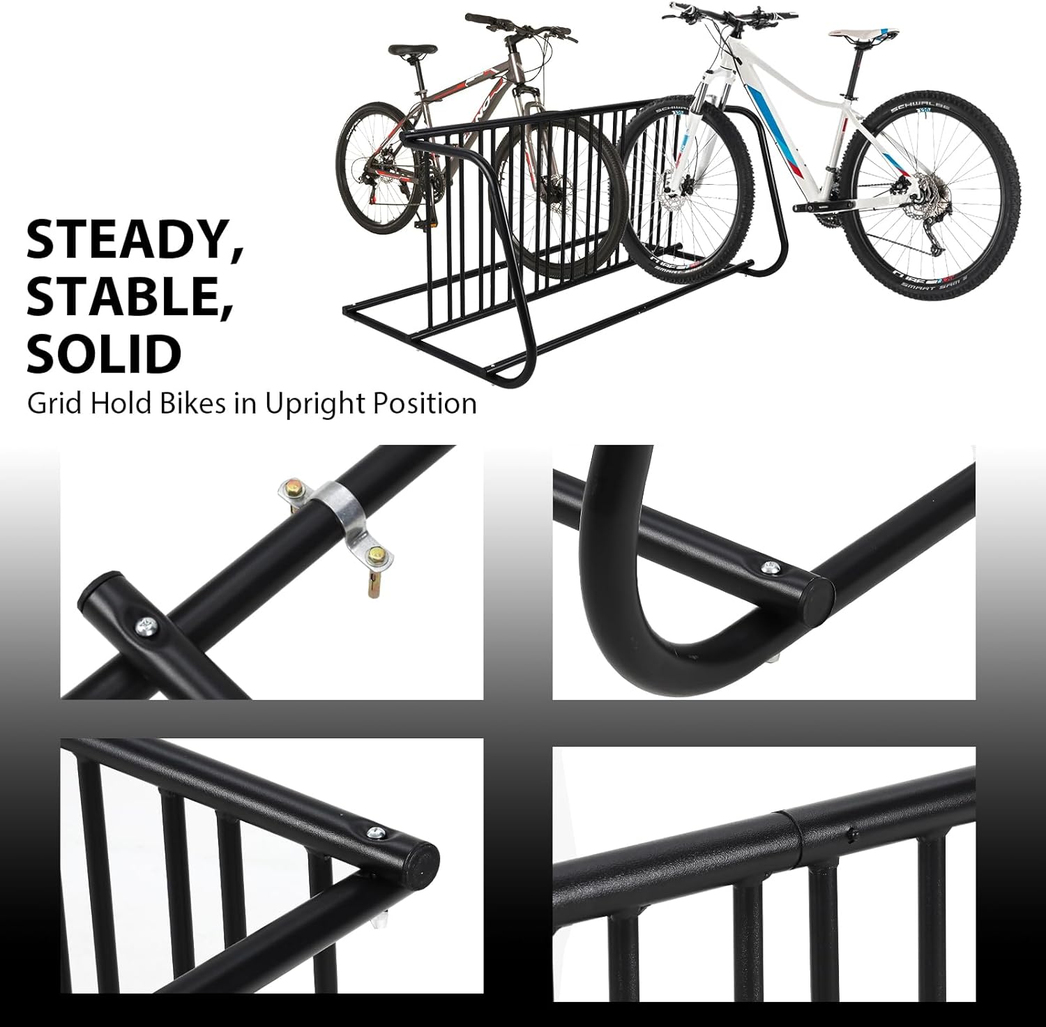 - PREMIUM 100% STEEL: This floor bike rack is made of premium powder-coated galvanized steel tube, resistant to scratch, wear, corrosion and rusk. Thickened tube has a stronger load-bearing capacity and won’t bend or damage easily