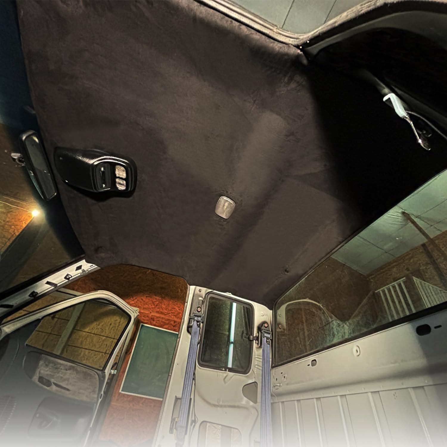 - Surface: Suede Fabric with Foam Backing Content : 1/9"(3mm) High-elastic Polyurethane Foam Material. (To determine the size you need, please measure your vehicle headliner from front to back, then add 6 inches.)Our black car suede headliner fabric provides a soft, luxurious feel, enhanced durability, and excellent noise insulation. Crafted from high-quality synthetic suede, it meets the demands of both automotive and home interior repairs.