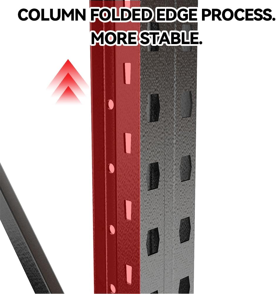 - 【 All-Steel Shelves with Reinforced Bottom Bracing for Maximum Load Capacity】 Unlike typical wooden shelves that are prone to warping, cracking, or moisture damage, this product features all-steel shelves with reinforced bottom bracing. These steel panels are designed to handle significantly heavier loads, making them ideal for storing a wide range of heavy-duty items. The bracing underneath provides extra support, helping to maintain the integrity of the shelf over time. Wood shelves, in contrast, may absorb moisture in damp environments like garages, leading to structural damage and reduced load capacity