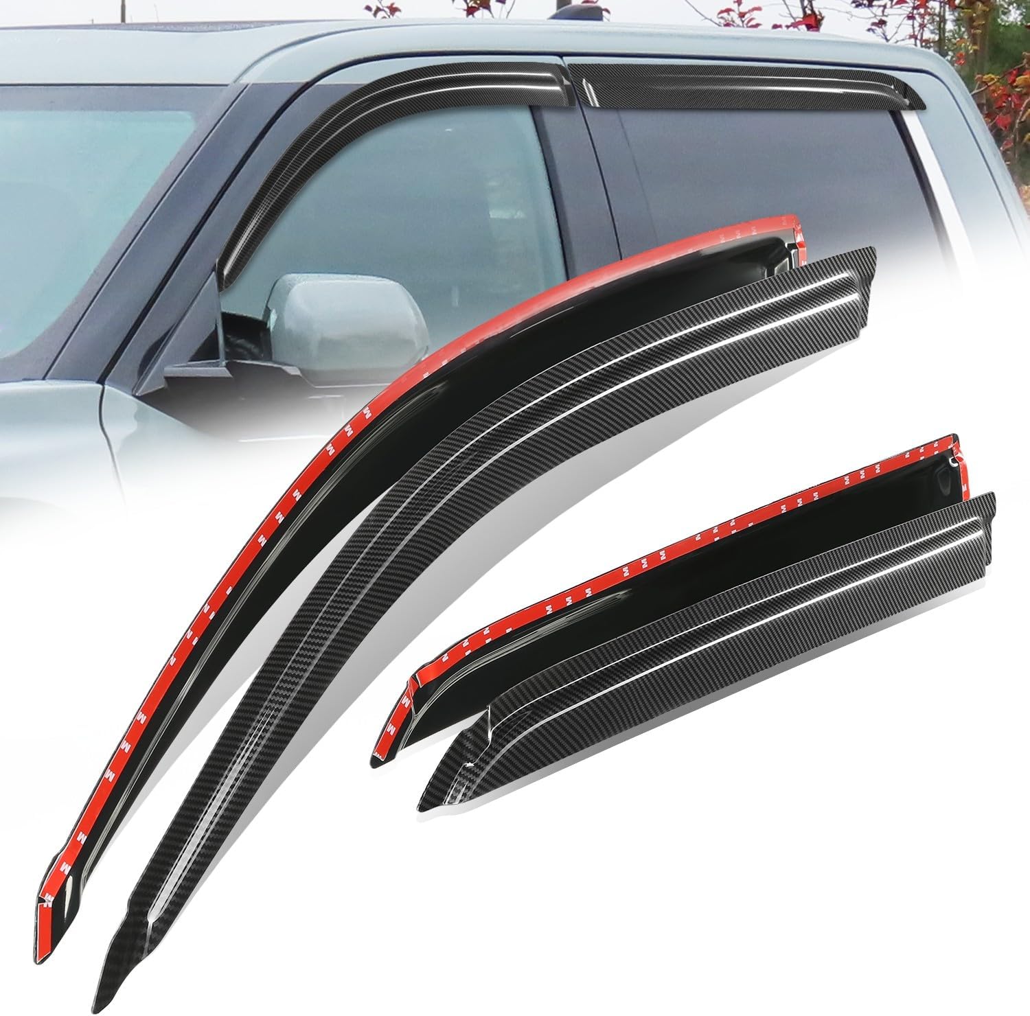 Auto Dynasty 4Pcs Carbon Fiber Pattern Window Visors Compatible with 2001-2007 Toyota Sequoia, Tape-On Front & Rear Window Deflectors Rain Guards Sun Wind Air Side Vent Shade, Glossy Black