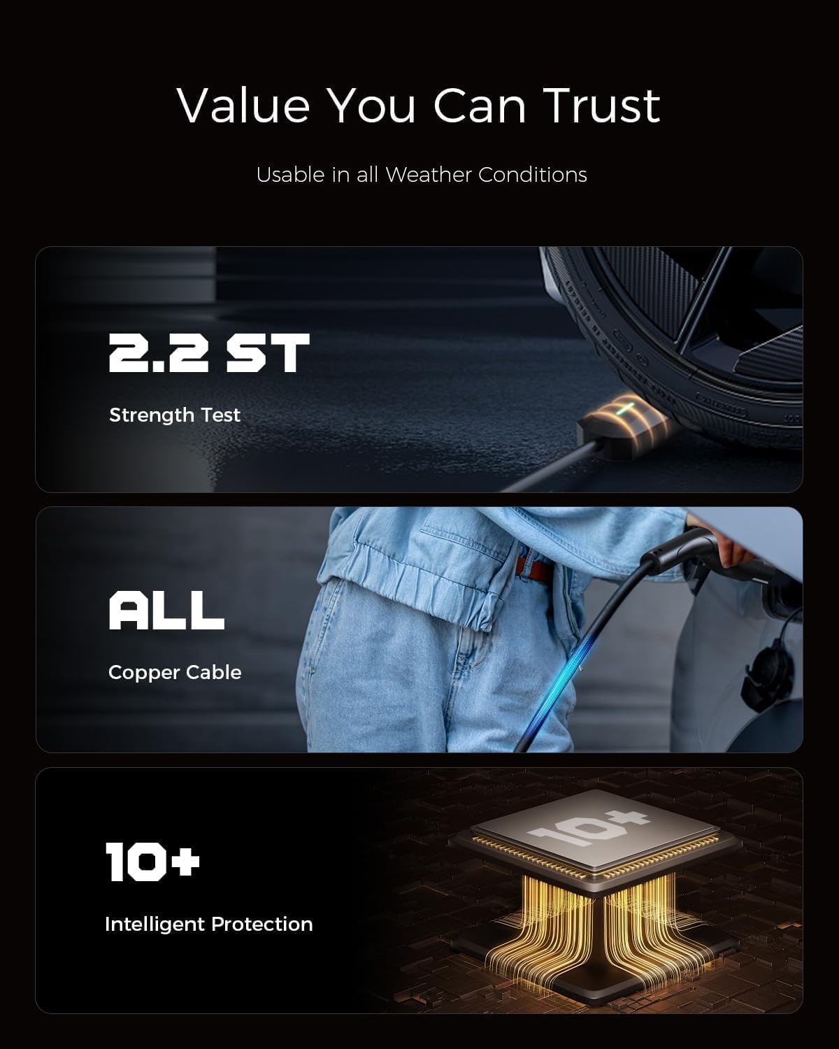- 【Universal Compatibility】This portable EV charger is compatible with all electric vehicles and plug-in hybrids equipped with J1772 connectors, including leading brands such as for Tesla (requires a SEAJ1772 adapter, not included), Ford, Hyundai, Kia, Nissan, Chevrolet, and more.