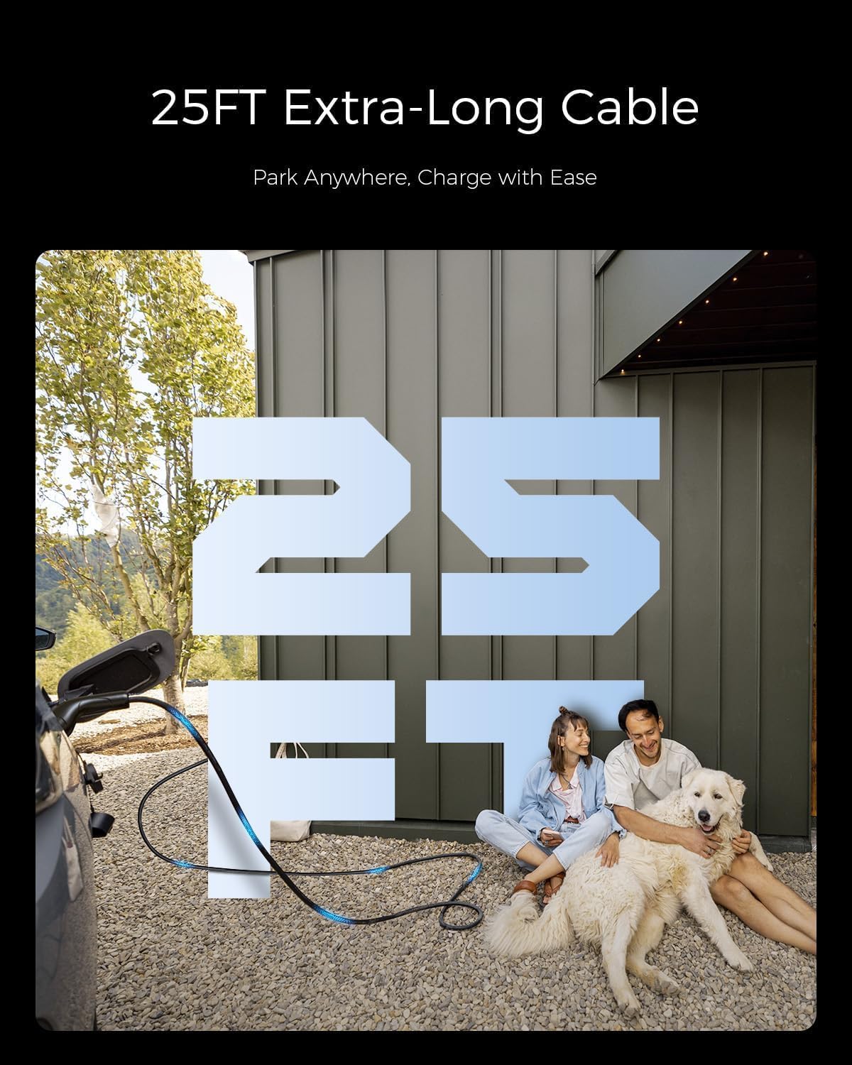 - 【Extended 25FT Cable Length】Equipped with an impressive 25-foot cable, you can effortlessly charge your electric vehicle (EV) at home or through public charging stations.