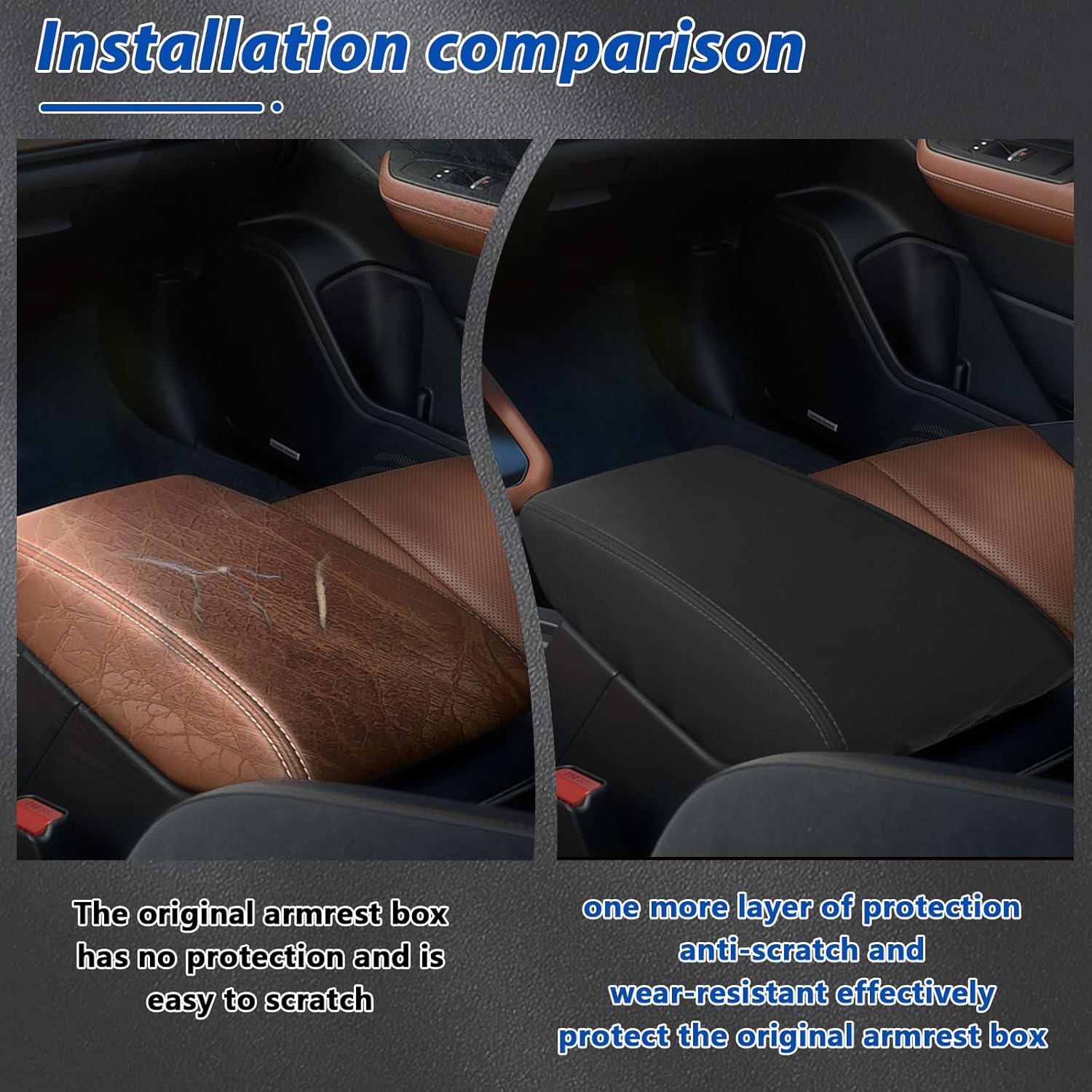 - [Quality Material]: The center console cover is made of high-quality leather, soft and comfortable, not only waterproof to protect your armrest box can also reduce the pressure on the elbow when driving, improving the comfort of the armrest.