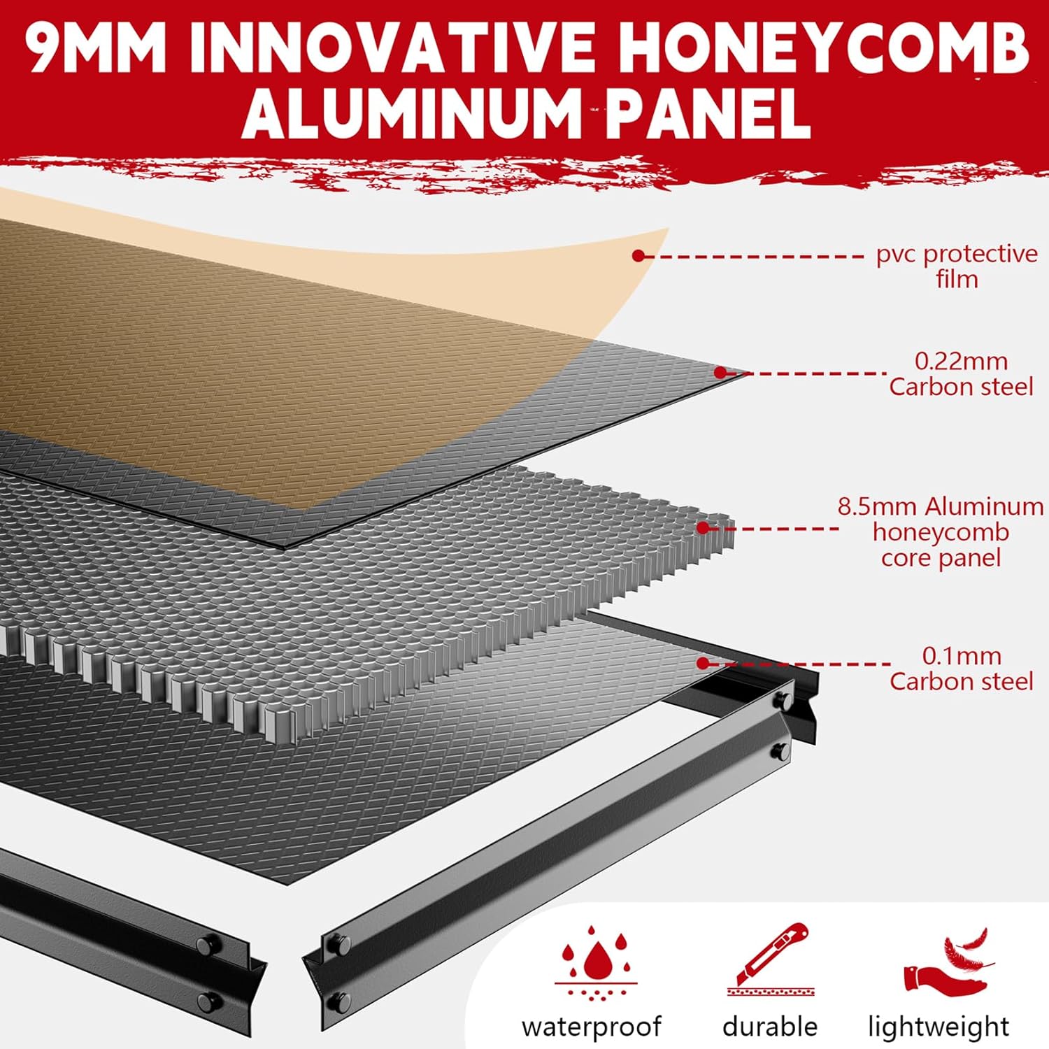 - [Stable & Safe Heavy Duty Storage Shelves – Anti-Slip, Anti-Tip Design] Safety is a top priority in high-traffic garages, warehouses, or basements. The aluminum honeycomb panel's textured surface boosts friction, keeping tools and bins from sliding—even when jostled. Its hexagonal structure distributes weight evenly: a gentle compression sound when loading signals balanced weight distribution, preventing sagging. Sturdy enough to stay steady during daily use, it resists tipping and includes anti-dumping kits for extra stability. Your workspace and items stay secure