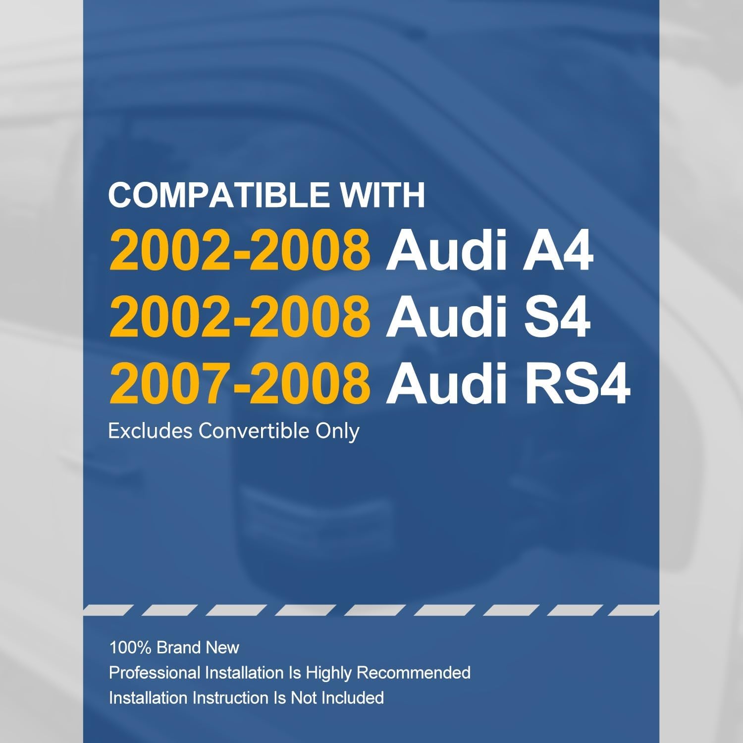 - Vehicle Compatibility - Window Visors Compatible with Audi A4 2002-2008, Audi S4 2002-2008, Audi RS4 2007-2008, Fits Model Excludes Convertible Only