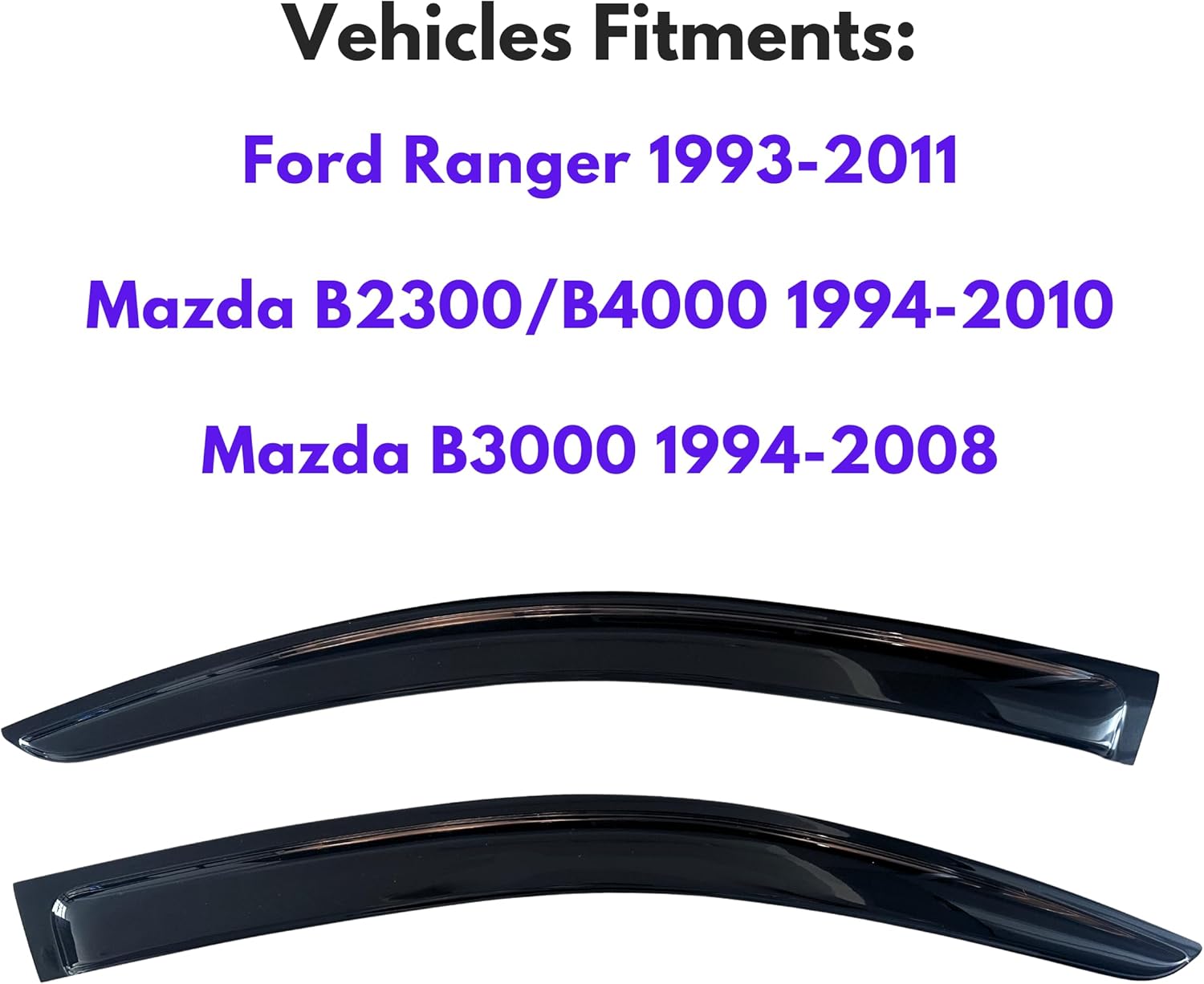 - 【Perfect Fit】KPY window visors rain guards vent deflectors compatible with Ford Ranger 1993-2011 & Mazda B2300/B4000 1994-2010 & Mazda B3000 1994-2008