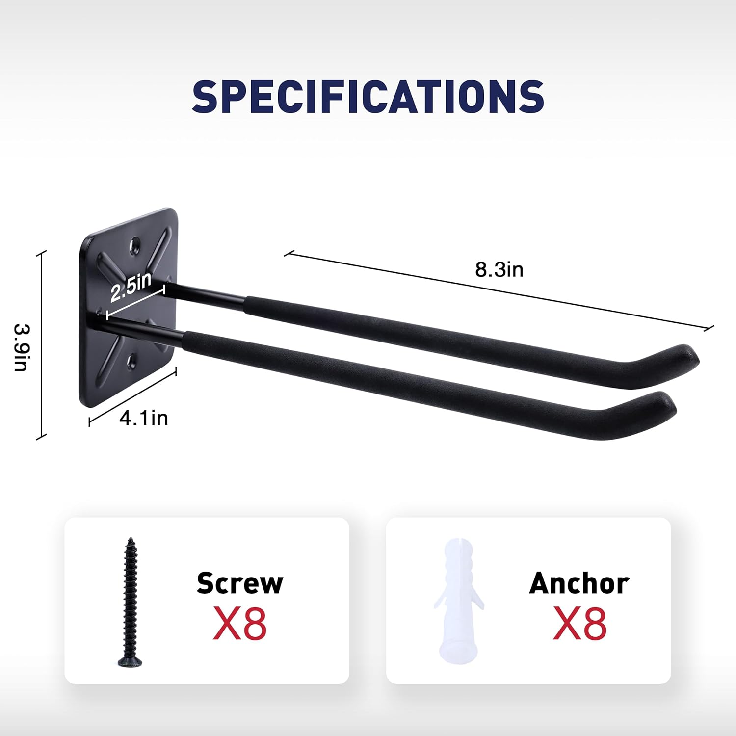 - Widely Application: This wall hooks can be used to hanging bikes, car tires, ladder, power tools, garden tools, folding chairs, snowboard, brooms, shovels, water pipes, etc.