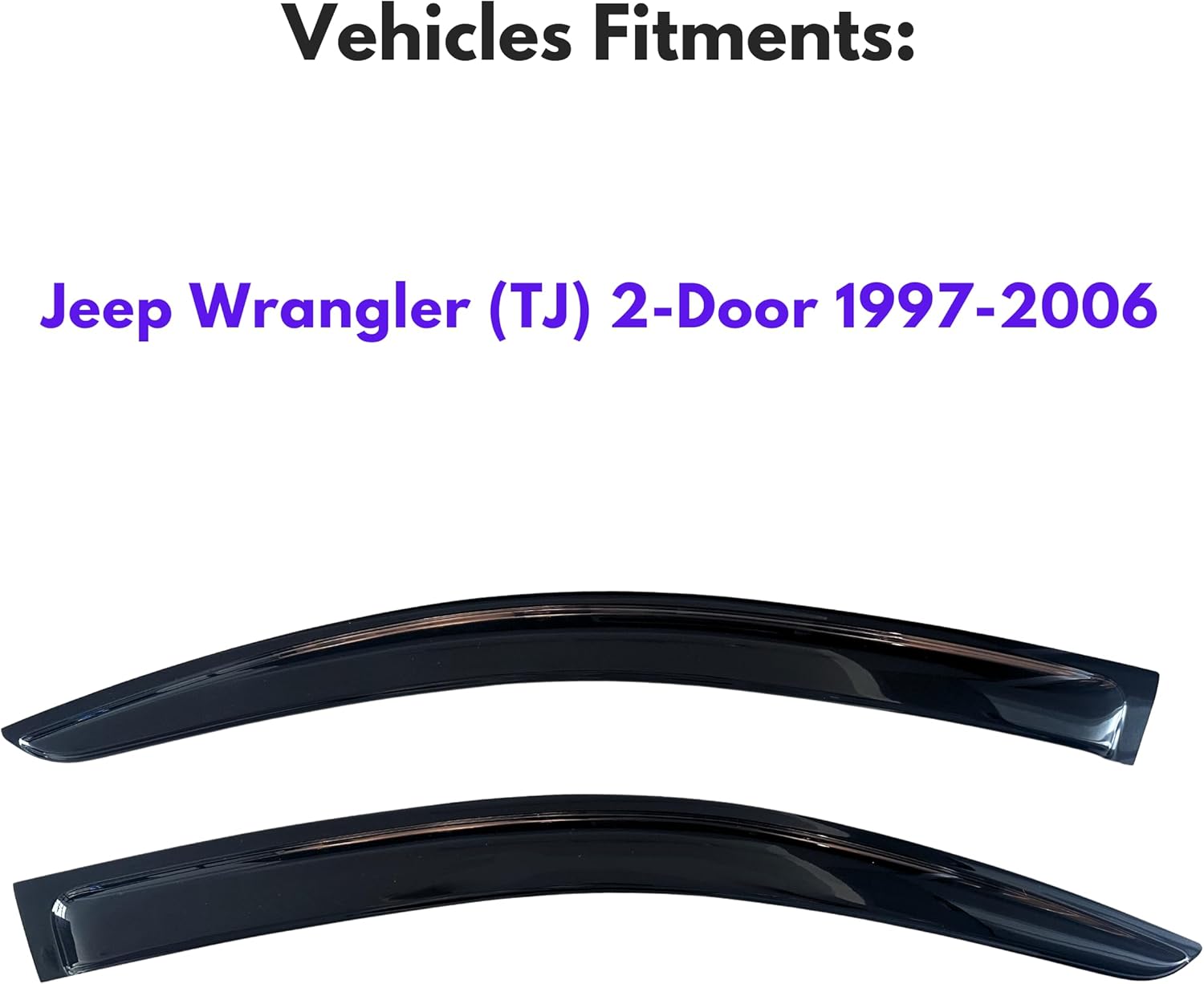 KPY Window Visor Compatible with 1997-2006 Jeep Wrangler (TJ) 2-Door, Rain Guard Vent Deflectors Tape-On, 1997 1998 1999 2000 2001 2002 2003 2004 2005 2006