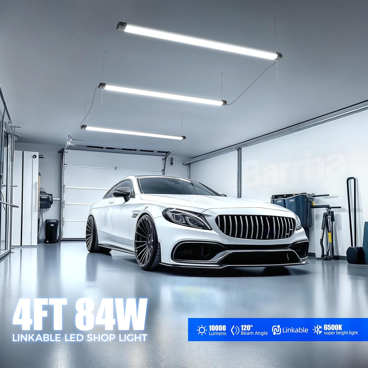 - 6500K 10000LM Super Bright: Barrina BS84 LED shop lights 4FT produce 10000 lumens output at 6500K super bright, 84W, low power consumption and efficient heat dissipation