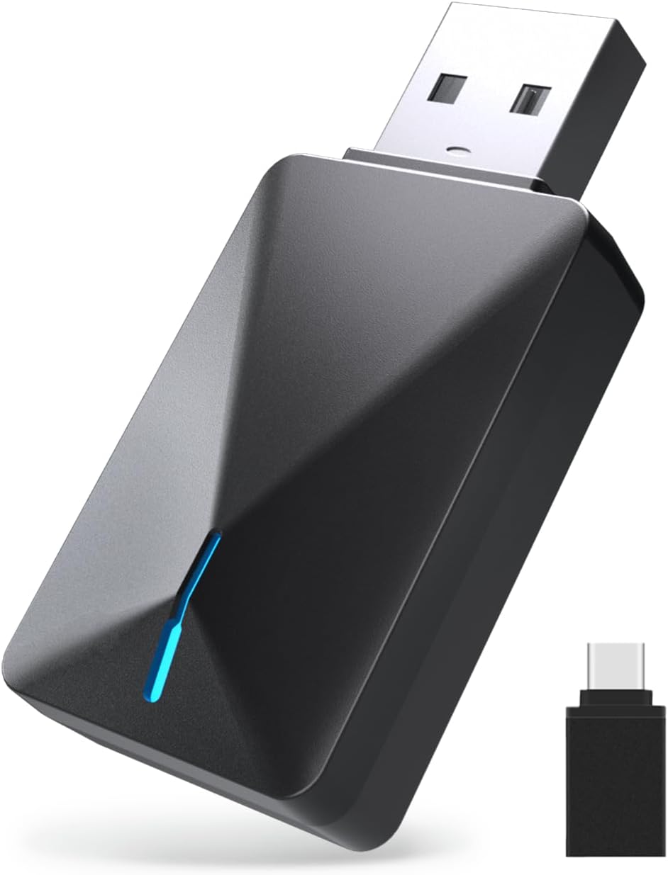 - 👍【Wireless connection】: Revolutionize your in-car experience with dual-band Wi-Fi (2.4/5GHz) and enhanced Bluetooth technology, delivering stable wireless CarPlay functionality. While preserving core OEM features like navigation, music playback, and voice assistant, our dynamic audio compensation technology enables high-fidelity sound transmission. Laboratory-tested through 10,000 insertion cycles (compliant with USB-IF standards), this adapter is compatible with most vehicle USB ports. Its shock-absorbing structure significantly reduces connection fluctuations during driving.