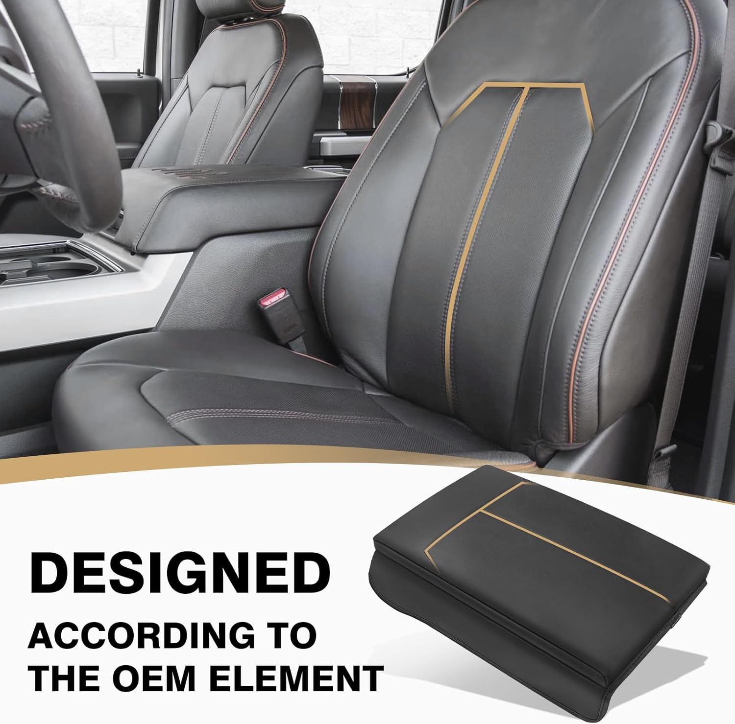 Muslogy Center Console Armrest Cover Compatible with Ford F250 F350 F450 2017-2022 Super Duty Comfort Armrest Pad Arm Rest Cushion Vegan Leather Protector 1-Inch Extra Thick(Bucket Seat ONLY)