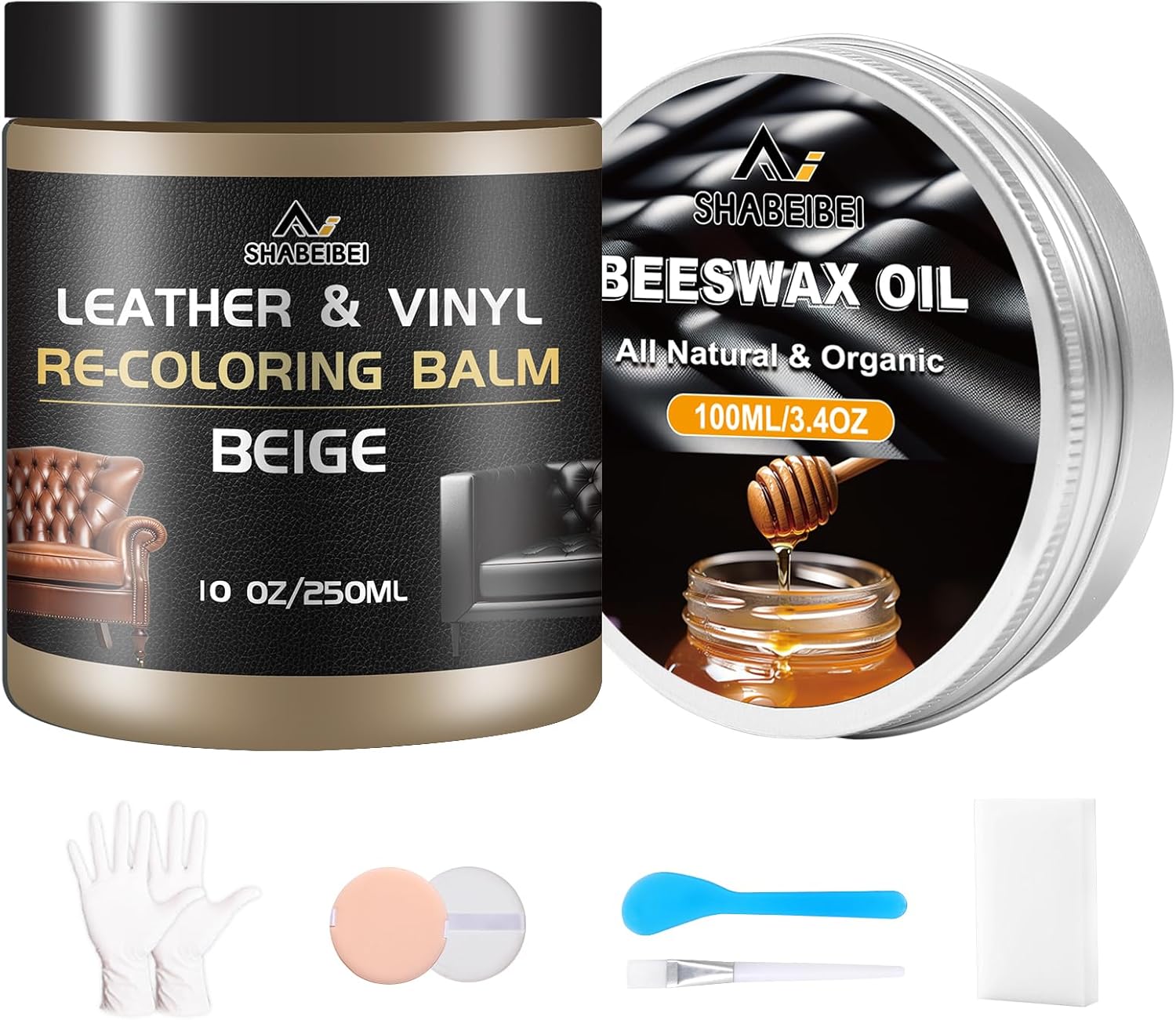- Leather Conditioner with Beeswax Oil -This leather recoloring balm and leather repair kit for furniture contains all the things you need to bring back leather surfaces back to their former glory. Each polish leather color restorer comes with beeswax oil for leather to lubricate tough fibers and make them last longer.