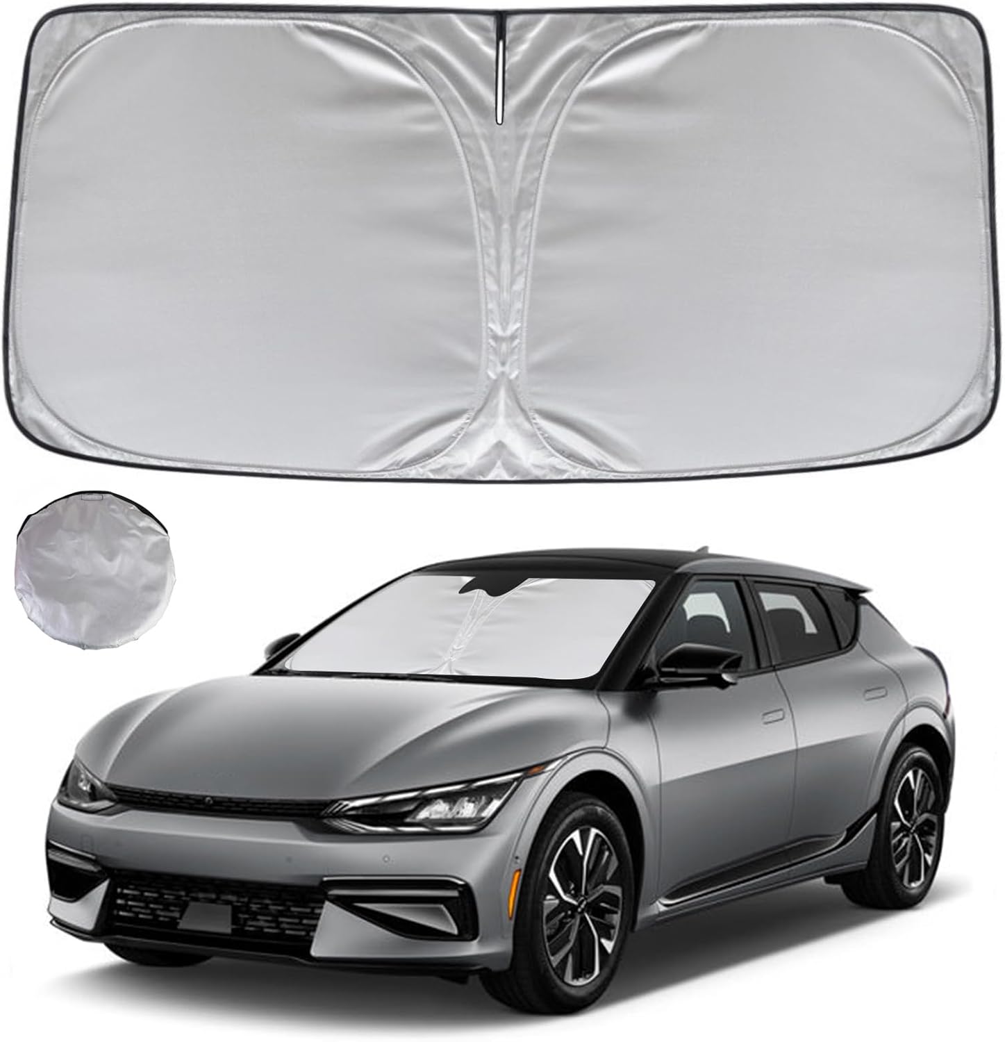 - KAYZT windshield sun shade is precise custom fit for 2022 2023 2024 2025 2026 Kia EV6, Thoroughly covers every corner of the windshield, Tailored to accommodate rear view mirror, Ensuring a seamless and snug fit without obstruction, Must have car accessories for Kia EV6