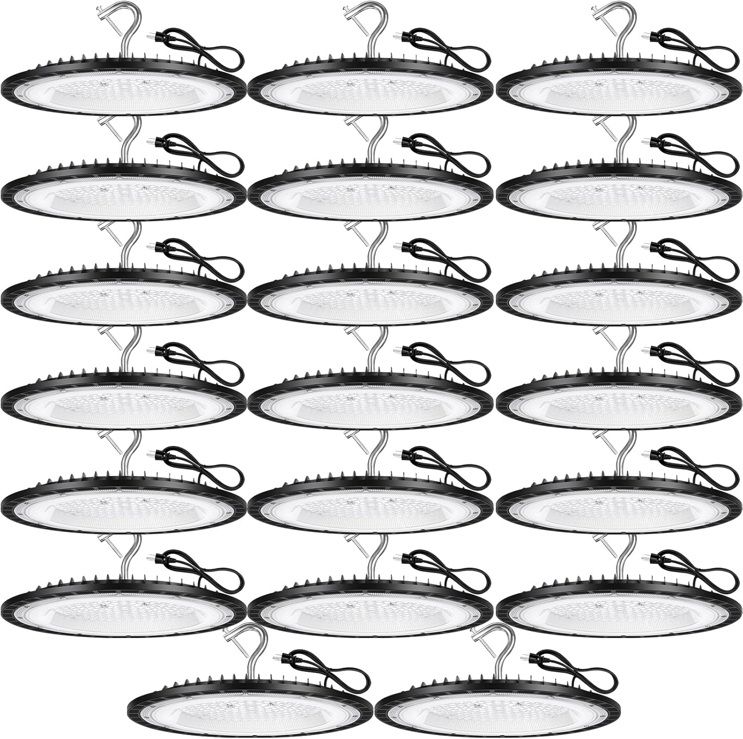 20 Pack 150W UFO Led High Bay Light Fixture,5000K Daylight Commercial Shop Bay Lighting,120VAC,21000LM,[650W MH/HPS Equiv.] US Plug Area Lighting for Garage/Warehouse/Barn/Gym/Factory/Workshop