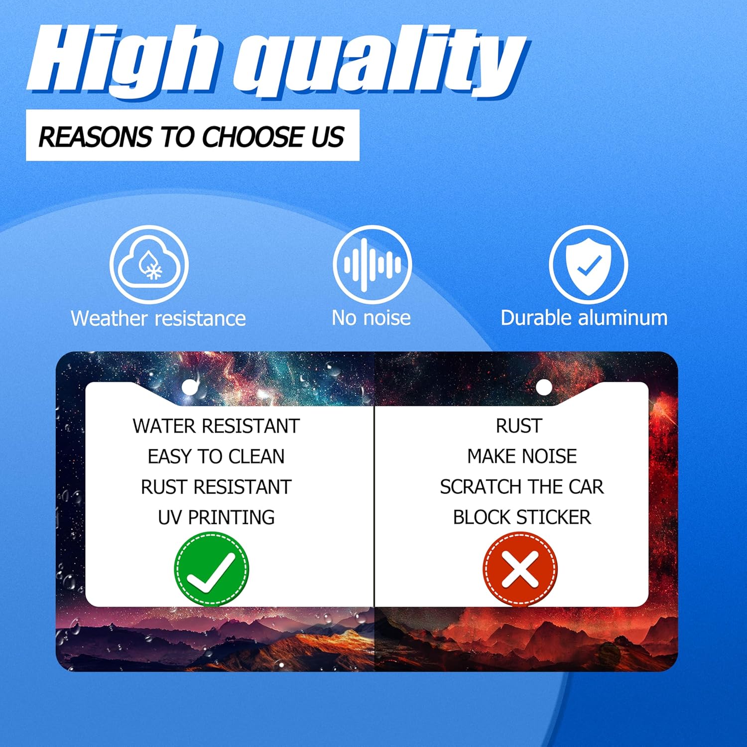 Mountain License Plate Frame Colorful Starry Sky Galaxy License Plate Stainless Steel Funny License Plate Holder Men Women Mountains Car Accessory Decoration 12.3" x 6.3"