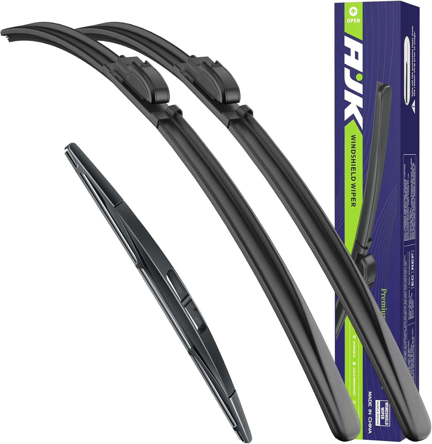 AJK Front Windshield Wiper for Jeep Wrangler 2018 2019 2020 2021 2022 2023 2024, Original Equipment Back Window Wipers Blades, Conventional, Vehicle Specific Fit, Pack of 3