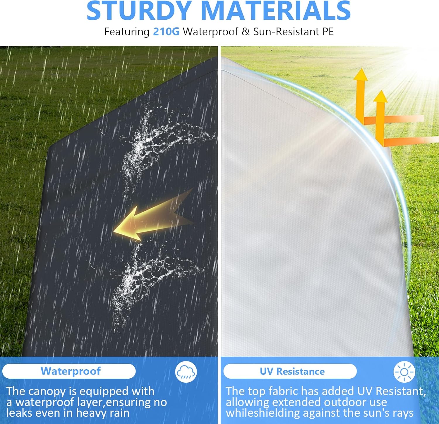 - 【Hassle-Free Assembly】- Thanks to the bungee cord-ball tie assembly. Simply secure the PE tarp with elastic cords, guaranteeing a tight fit over time. This user-friendly design caters to the convenience needs of busy homeowners