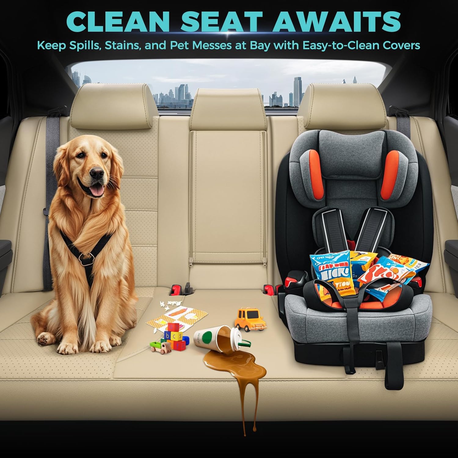 - ăSuperior Car Seat Protectoră: These waterproof seat covers for cars adopts a four-layer structure, providing exceptional protection to safeguard your carseat from coffee spills and pet scratches. It is also easy to clean, simply wipe with damp cloths to make your waterproof car seat cover looks brand new for years.