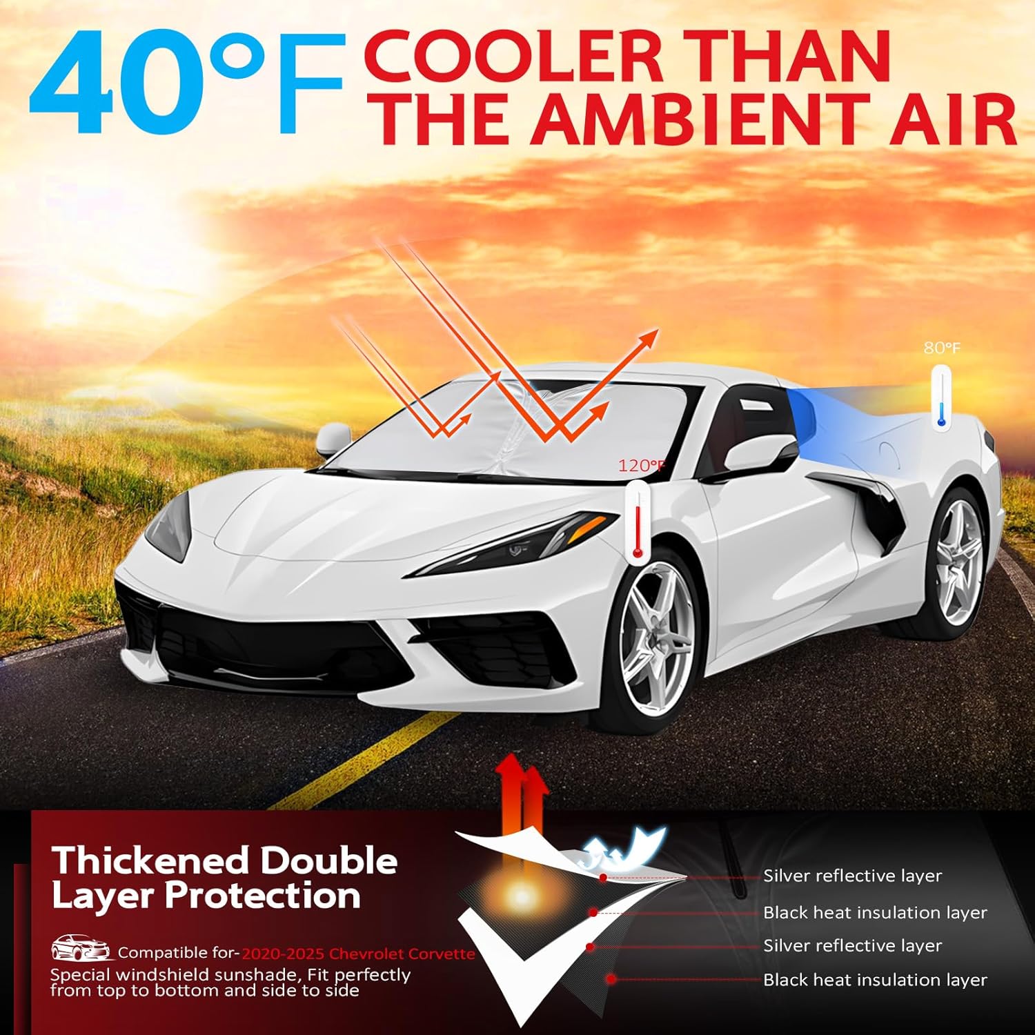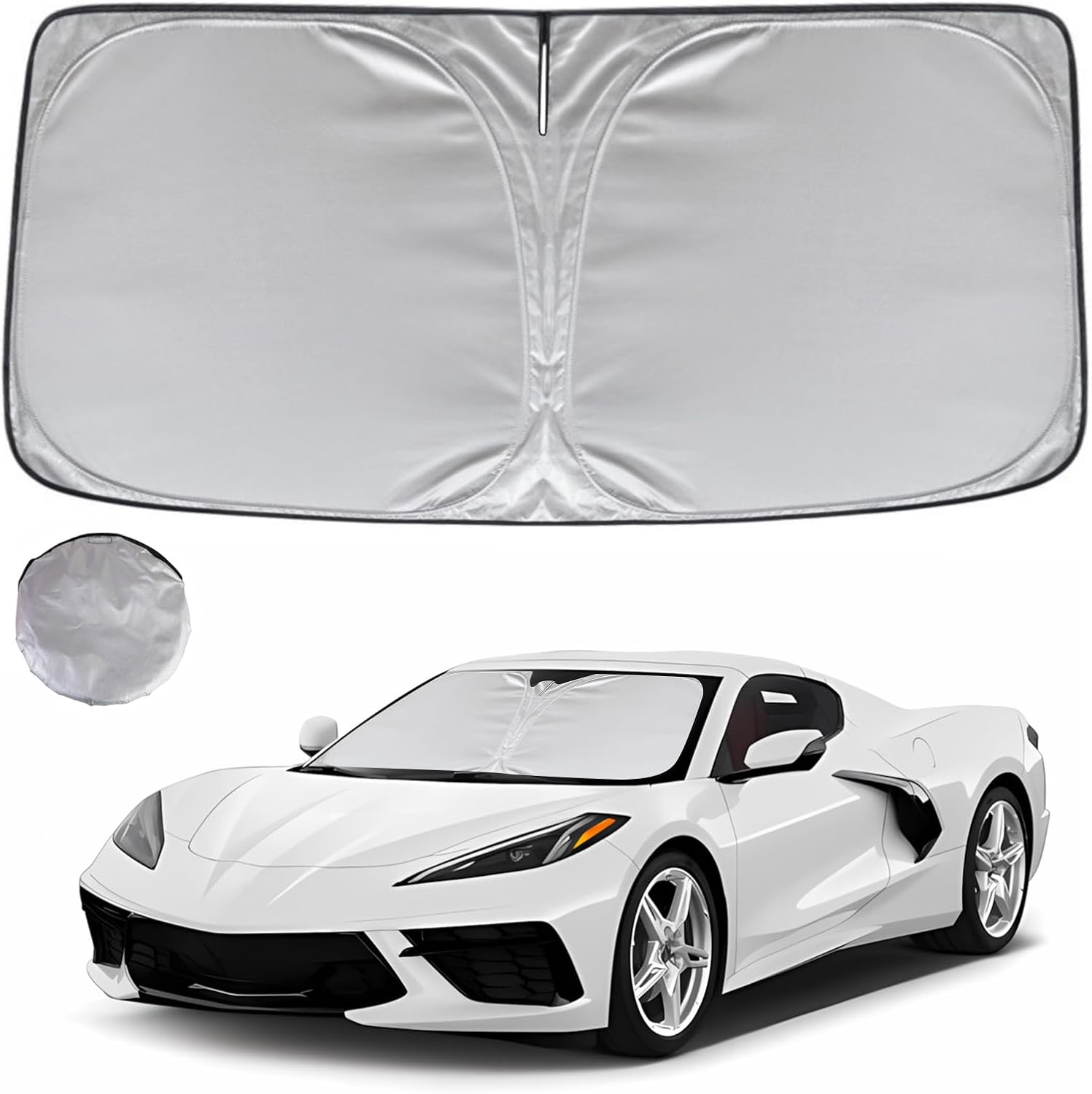- KAYZT windshield sun shade is precise custom fit for 2020 2021 2022 2023 2024 2025 Che-vrolet Corvette, Thoroughly covers every corner of the windshield, Tailored to accommodate rear view mirror, Ensuring a seamless and snug fit without obstruction, Must have car accessories for Chevy Corvette