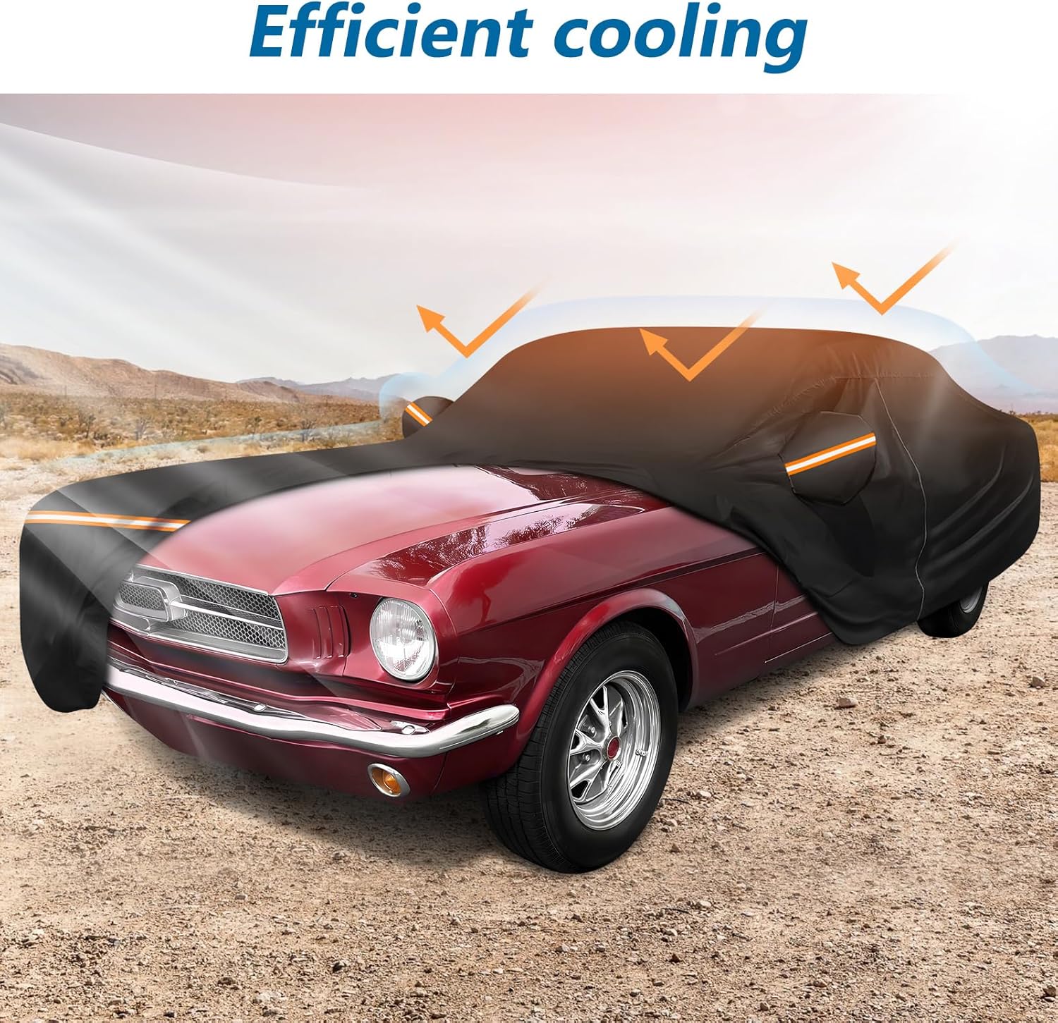 Car Cover for Ford Mustang 1964-1968, Waterproof 210D Oxford Cloth and Cotton Cover Outdoor Full Car Covers with Zipper Windproof Heavy Duty All Weather with Wind, Sun, UV and Dust Protectio