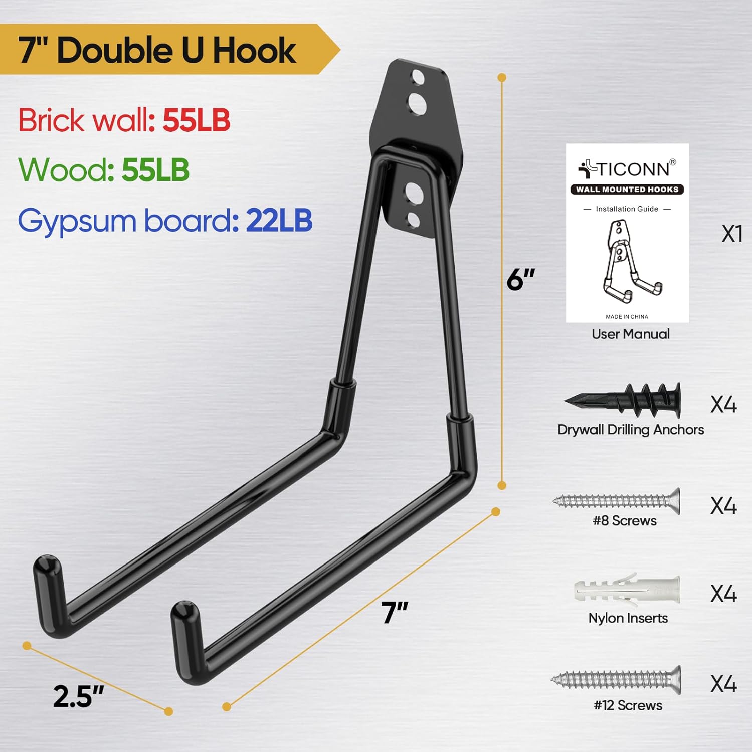 - [EASY TO INSTALL] These heavy-duty hooks can be easily installed on any wall surface, such as concrete wall, wood wall, or brick wall. By following our simple instructions and using the included screws and anchor plugs, you can quickly and securely mount the hooks to the wall