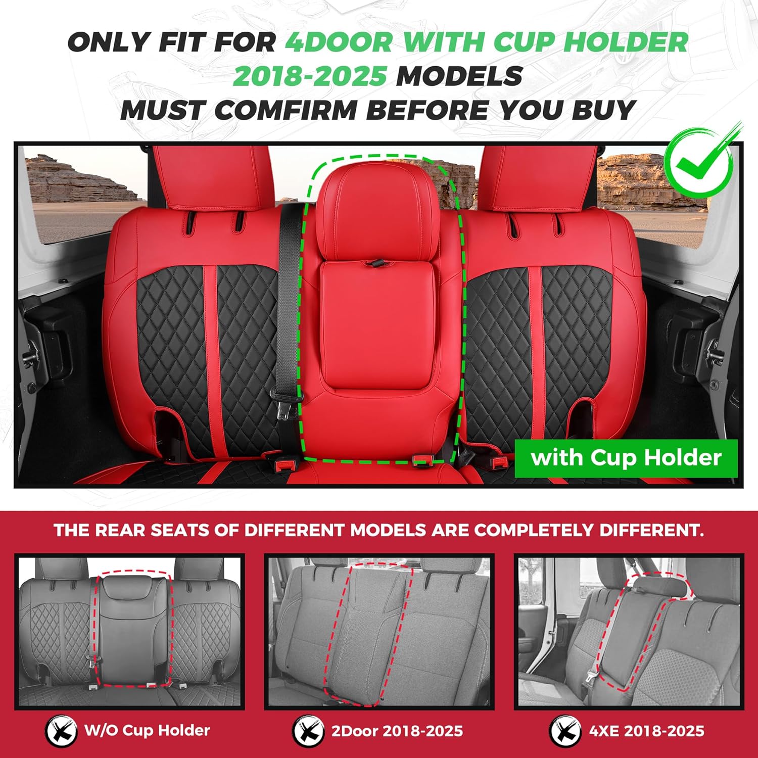 - ăCustom Car Seat Coversă: Precision cut and custom tailored to "2024 Wrangler Sport S 4DR SUV" for a glove-like fit. Exclusively designed for Jeep Wrangler Seat Covers 4Door 2018 2019 2020 2021 2022 2023 2024 2025 With Rear Cup Holder, since they have the same or similar seat size. (Not fit for Wrangler 4XE and 2 Door)