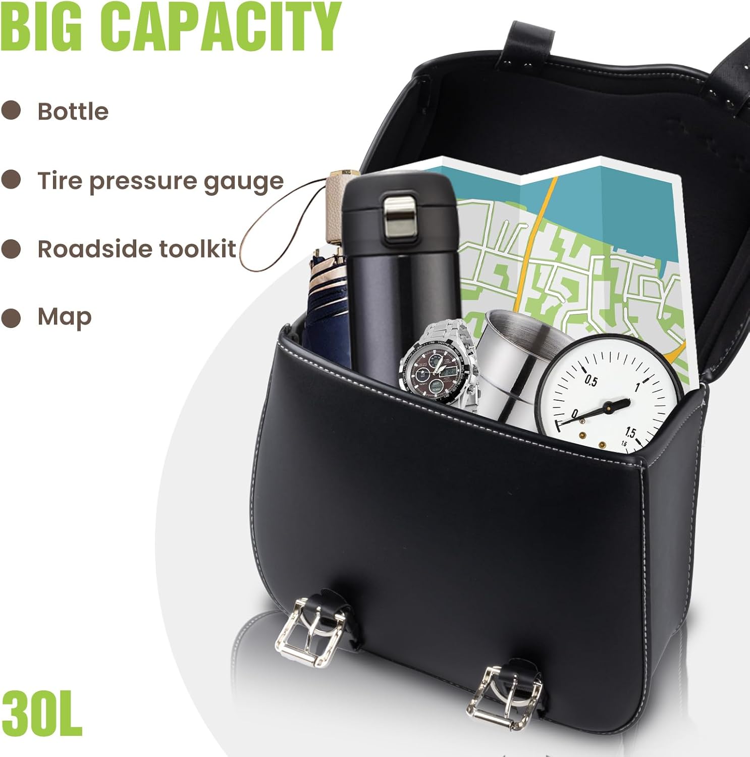 30L Motorcycle Saddlebags Water-Resistant PU Leather Storage for Harley Sportster Softail Dyna Honda Shadow | Quick-Install Design with Reinforced Straps | Universal Fit Large Capacity Luggage Bags