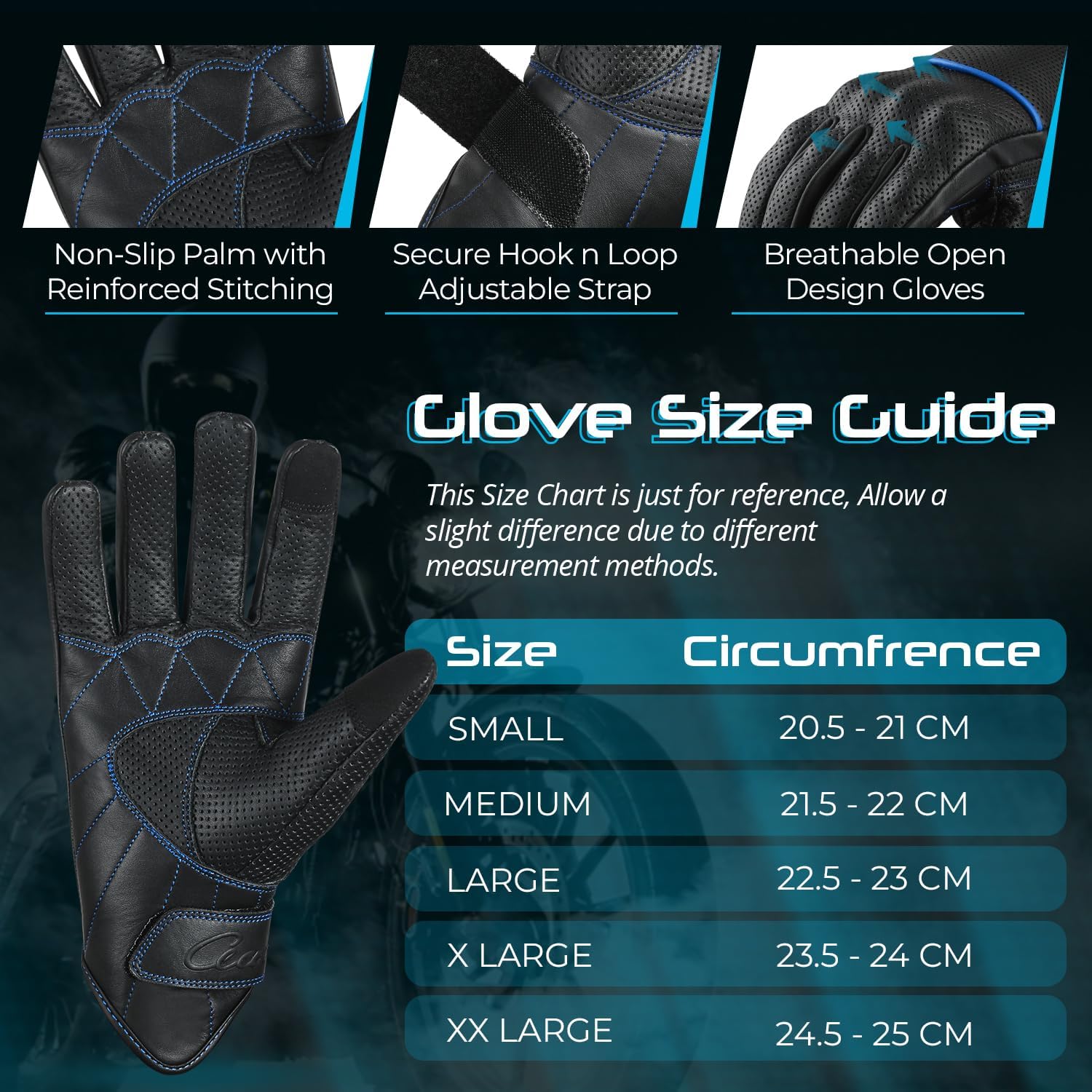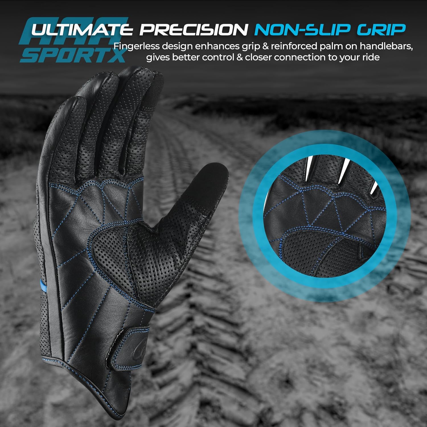 - LEATHER MOTORCYCLE GLOVES - aaasportx breathable black blue Motorcycle Gloves are made of Genuine Leather. Our Lightweight Motorcycle Gloves ensures durability through a variety of situations. aaasportx Motorcycle Gloves for Men offer a high-quality, stylish, and durable finish that excludes sophistication and toughness on the road.