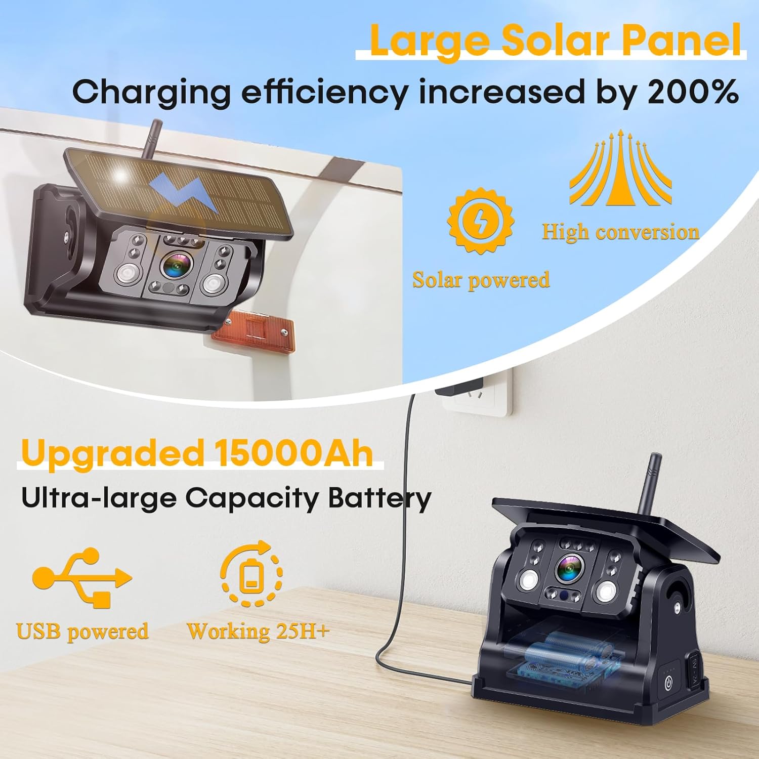 - SOLAR POWERED β LONG-LASTING BATTERY LIFE: Built for long trips, the 15000mAh battery offers up to 25 hours of use on a full charge. The 3W solar panel recharges during daylight, ensuring consistent performance. Stay powered for longer journeys without worrying about charging.