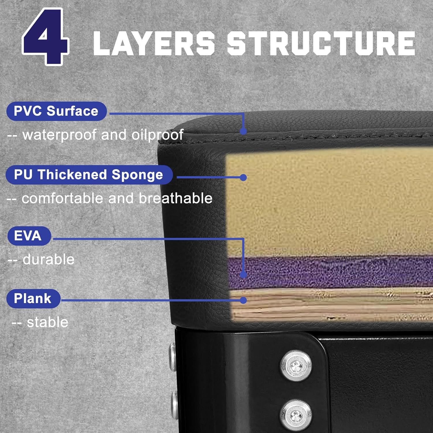 - Comfortable 4 Layers Structure Padded Seat : The Mechanic roller seat cushion is consists of 4 layers structure. The 1st layer is a solid wooden plank, the 2nd layer is a durable EVA, the 3rd layer is a comfortable and breathable PU thickened sponge, and the 4th layer is a waterproof and oilproof PVC surface. Plump and Soft Touch, Awsome Support, and Very Comfortable.