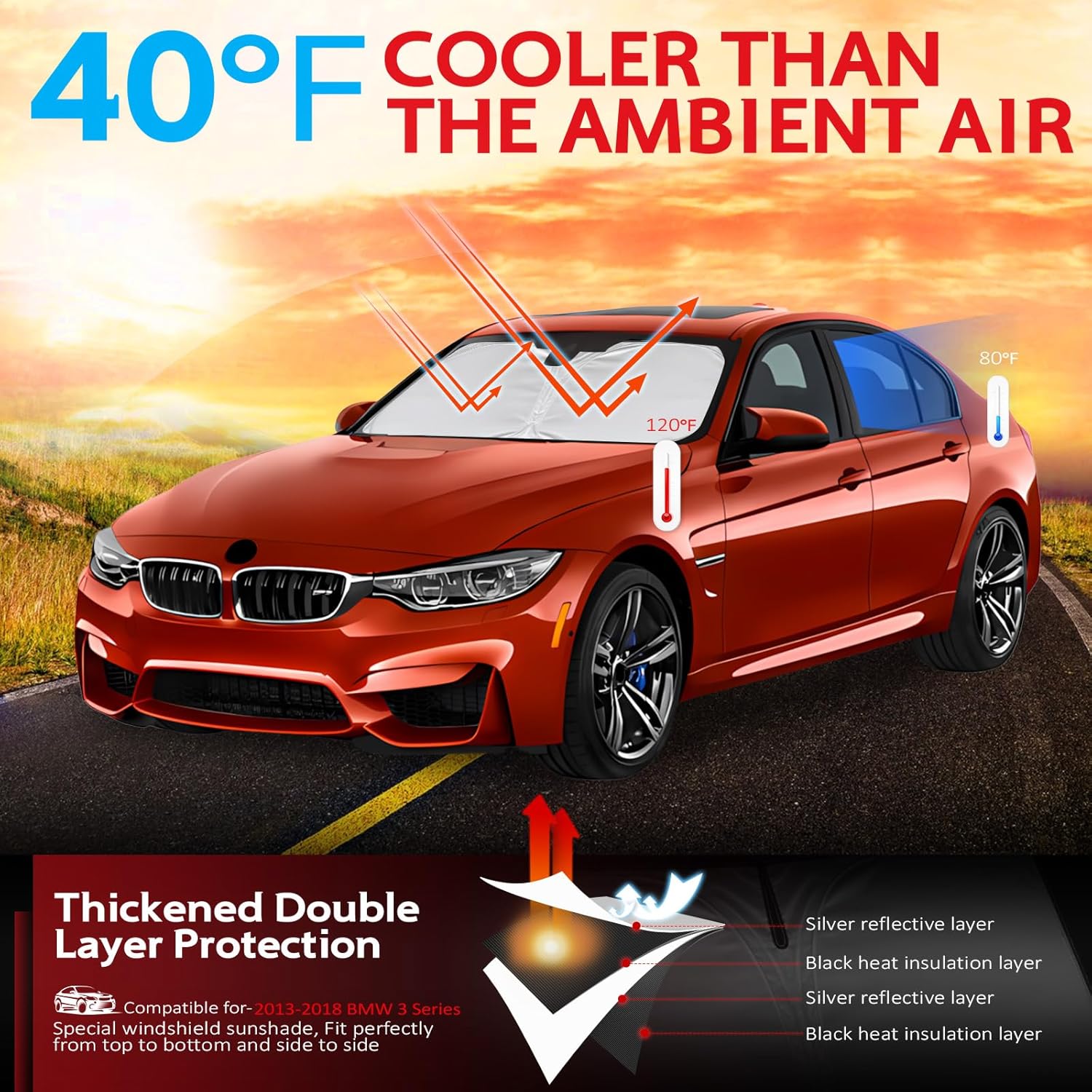 KAYZT Windshield Sun Shade for 2013-2018 BMW 3 Series/F30/F31/F80/M3 Foldable Sunshade 3 Series 330i 328i 320i 325i 335i Front Window Custom Fit Car Accessories