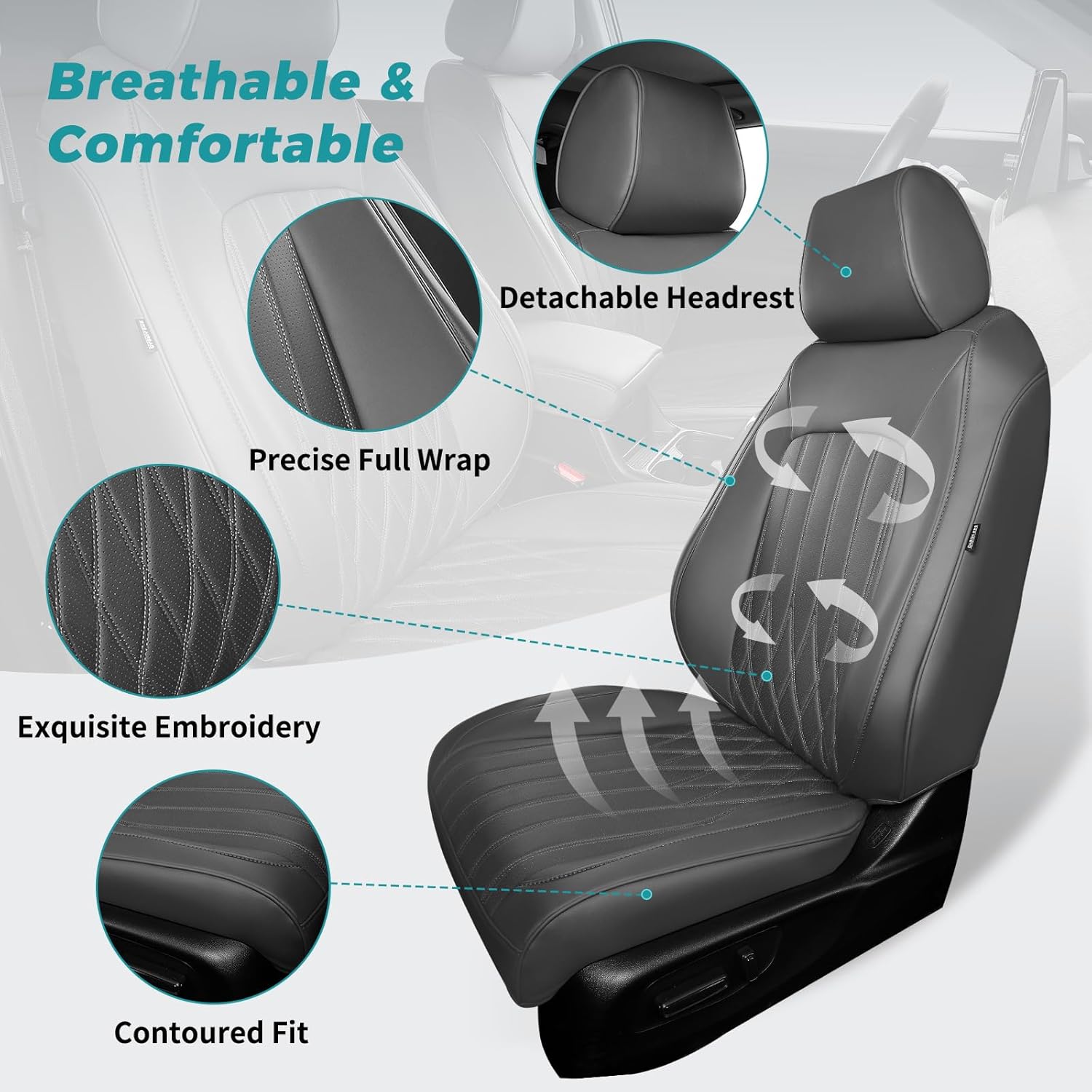 Seat Covers for Honda CRV 2023 2024 2025 2026 EX/EXL/LX/Sport/Touring/Special Edition, Hybrid & Gas, 1:1 Custom Leather Seat Covers Full Set - Grey