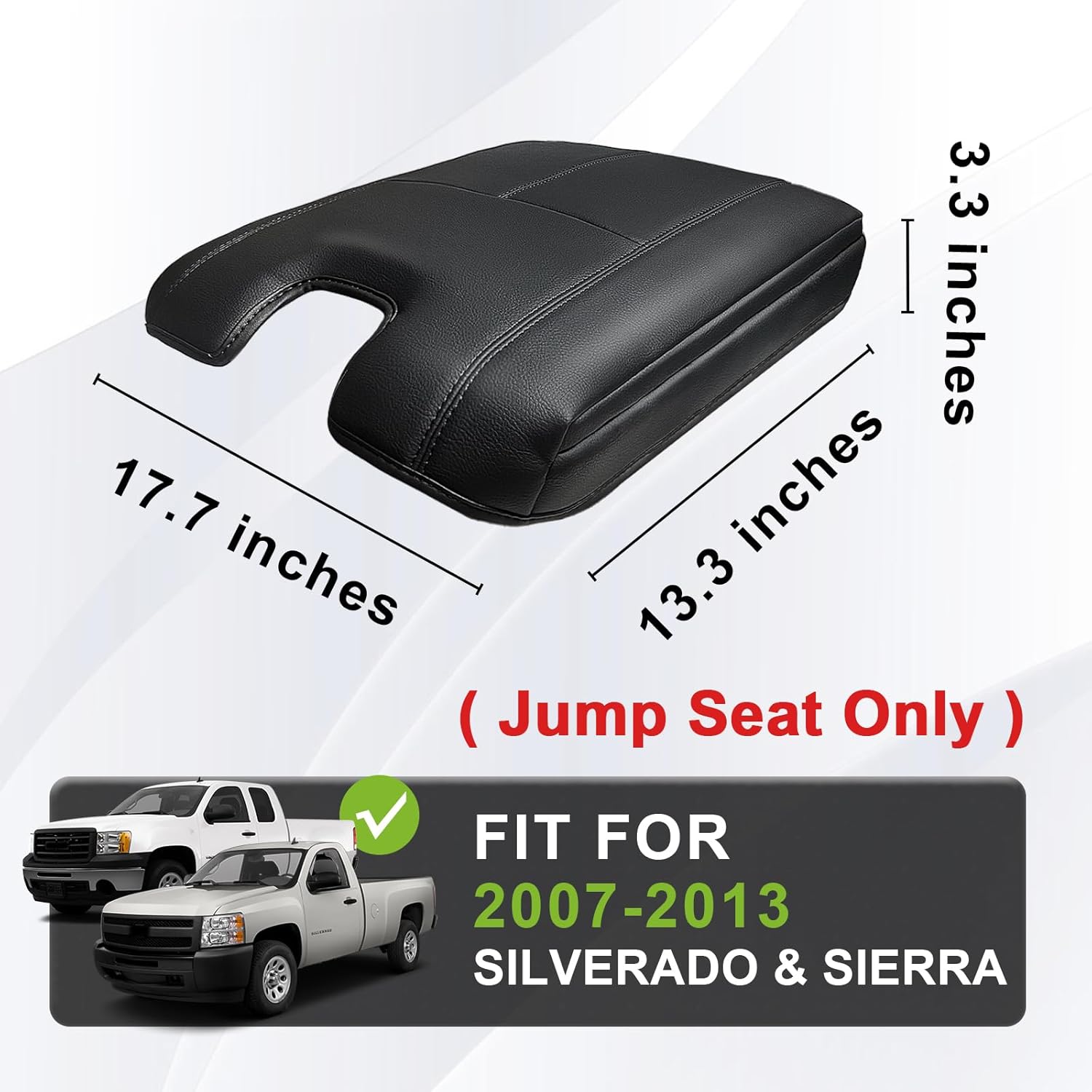 Muslogy Center Console Armrest Cover Compatible with Chevy Silverado/Tahoe & GMC Sierra/Yukon 2007-2013 Comfort Armrest Pad Arm Rest Cushion Vegan Leather Protector 1-Inch Extra Thick(Jump Seat ONLY)