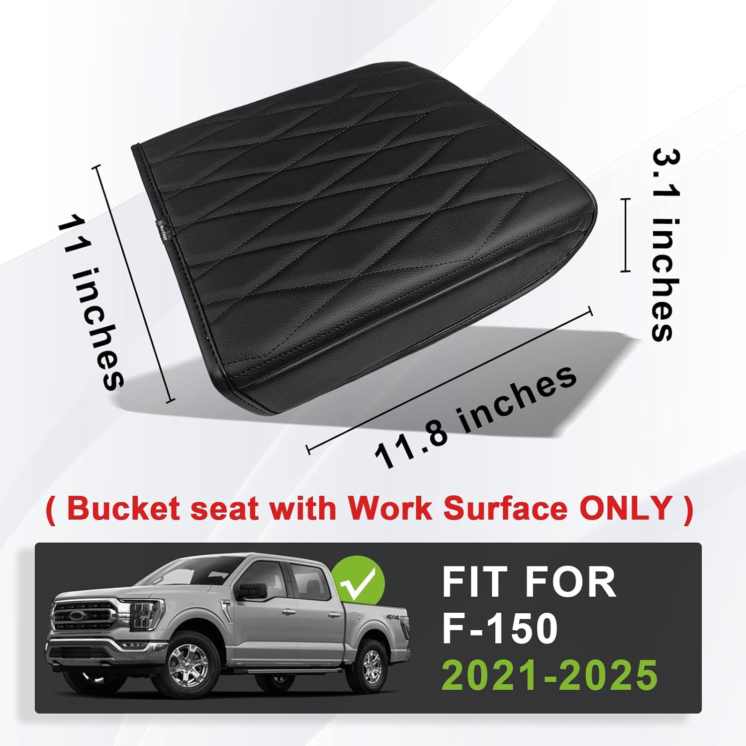 Muslogy Center Console Armrest Cover Compatible with Ford F-150 F150 2021-2025 Comfort Armrest Pad Arm Rest Cushion Vegan Leather Protector Regular Thick(WorkSurface ONLY)