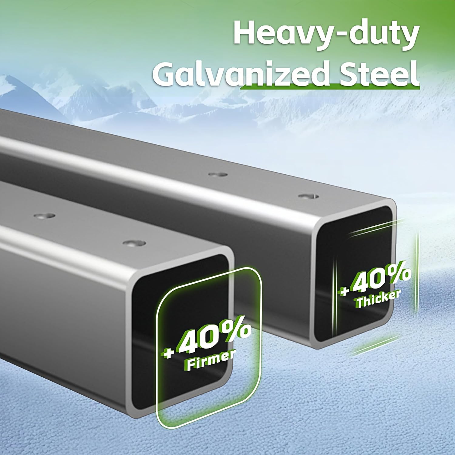 - 【STRONG FRAME MATERIAL】Vigo huseeo 12'x20' metal carport features a square steel tubing frame reinforced at six corners to prevent shaking, while its high-quality galvanized steel roof provides excellent anti-rust and sun protection. Wind Rating: 100 MPH. Snow Load Capacity: 35 PSF.